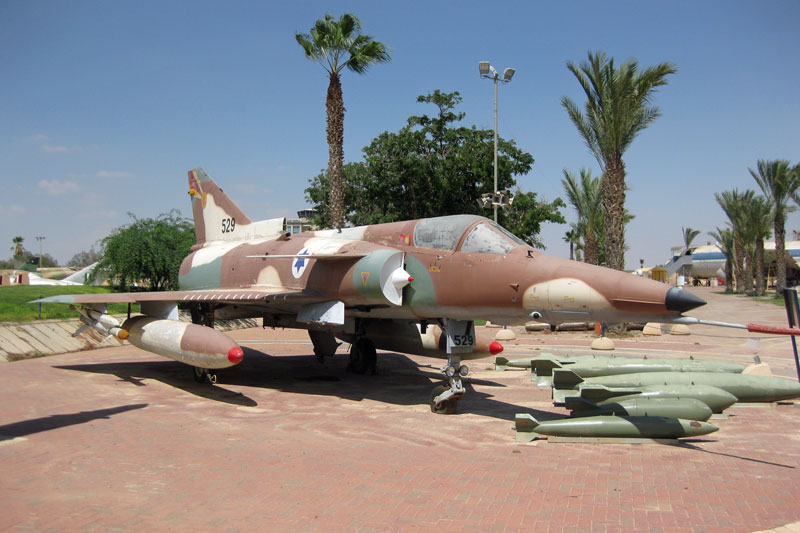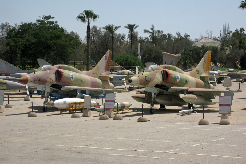 Junto al edificio del museo, a la derecha según entramos a la zona de exposición a cielo abierto, veremos los aviones capturados de países vecinos como Siria, Egipto y Jordania. Se exponen como trofeos históricos, éxitos de una generación anterior.