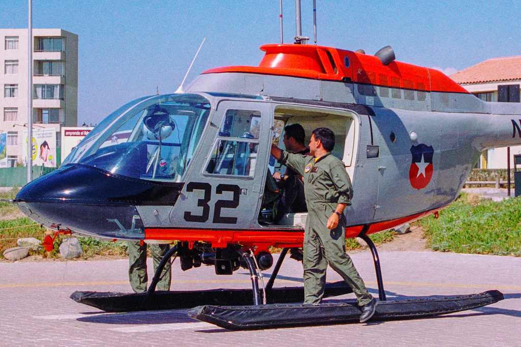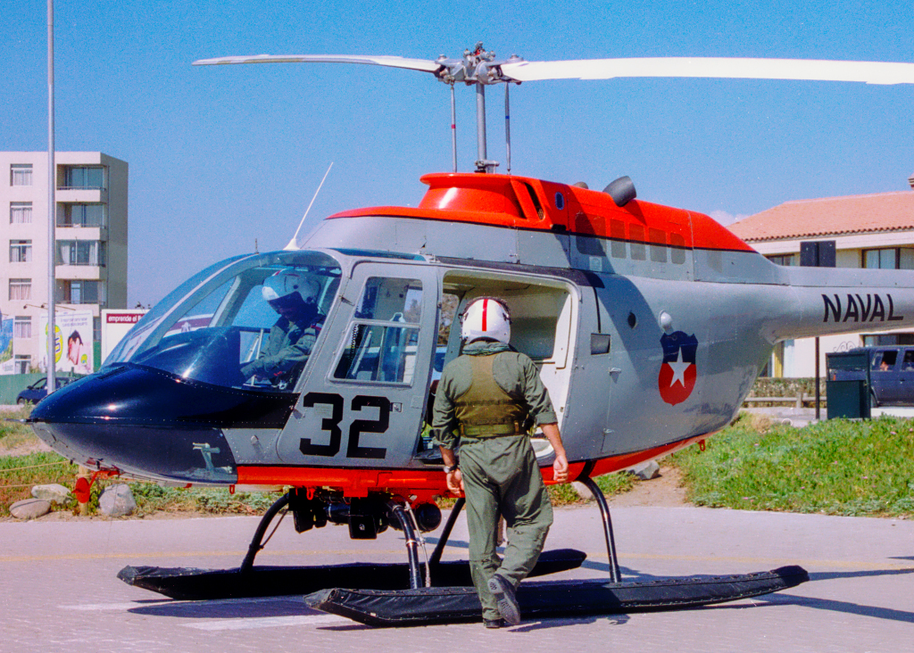 Durante una quincena de vacaciones familiares a inicios de enero de 2002 en el balneario chileno de La Serena (IV Región de Coquimbo), pude documentar que la Armada de Chile mantenía desplegado un Bell 206B JetRanger para tareas de búsqueda y rescate durante la temporada estival.