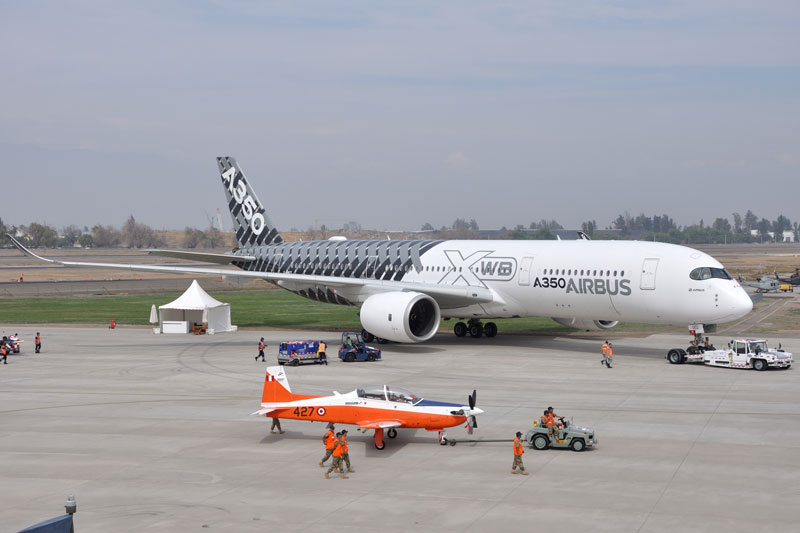 En horas de la tarde del 26 de marzo del 2016 el FAP 427 y el FAP 433 en compañía de dos Alenia C-27J Spartan del Grupo Aéreo N° 8 hicieron su arribo al Aeropuerto Internacional Comodoro Arturo Merino Benítez de Santiago de Chile a fin de participar de la Feria Internacional del Aire y del Espacio FIDAE 2016, allí hicieron su primer vuelo de demostración en la tarde del día 29 de marzo.