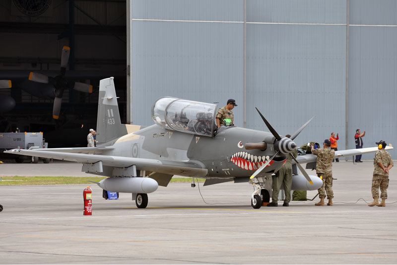 Los KT-1P pueden recibir los pilones para ser configurados con tanques de combustible suplementarios, bombas de práctica, bombas MK-82 de 250 kg., MK-83 de 500 kg, lanzacohetes LAU-131 de 70 mm. y pods de ametralladoras FN HMP-250 de 12.7 mm.