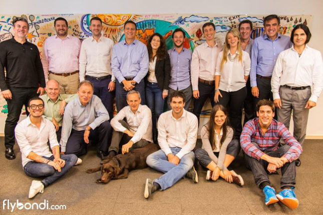 Imagen de portada: Aspirantes a ingresar a FlyBondi con funcionarios de la empresa y el perro oficial de la compañía (foto FlyBondy).