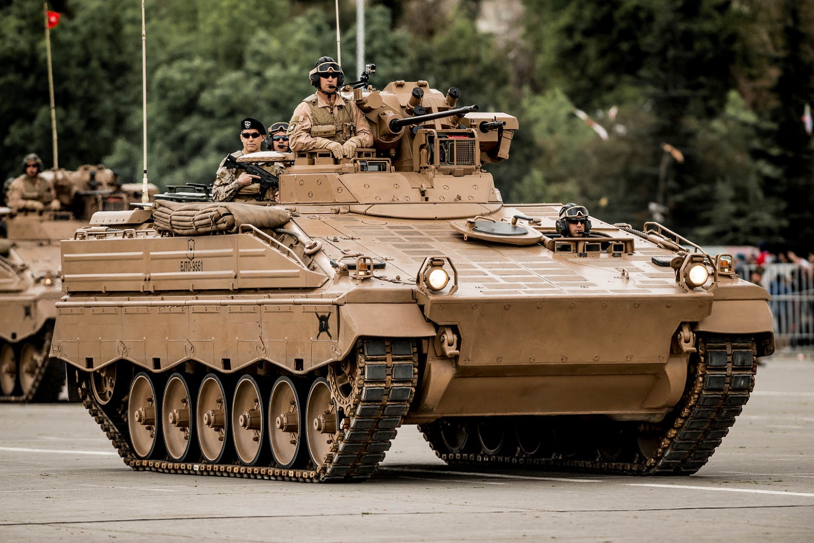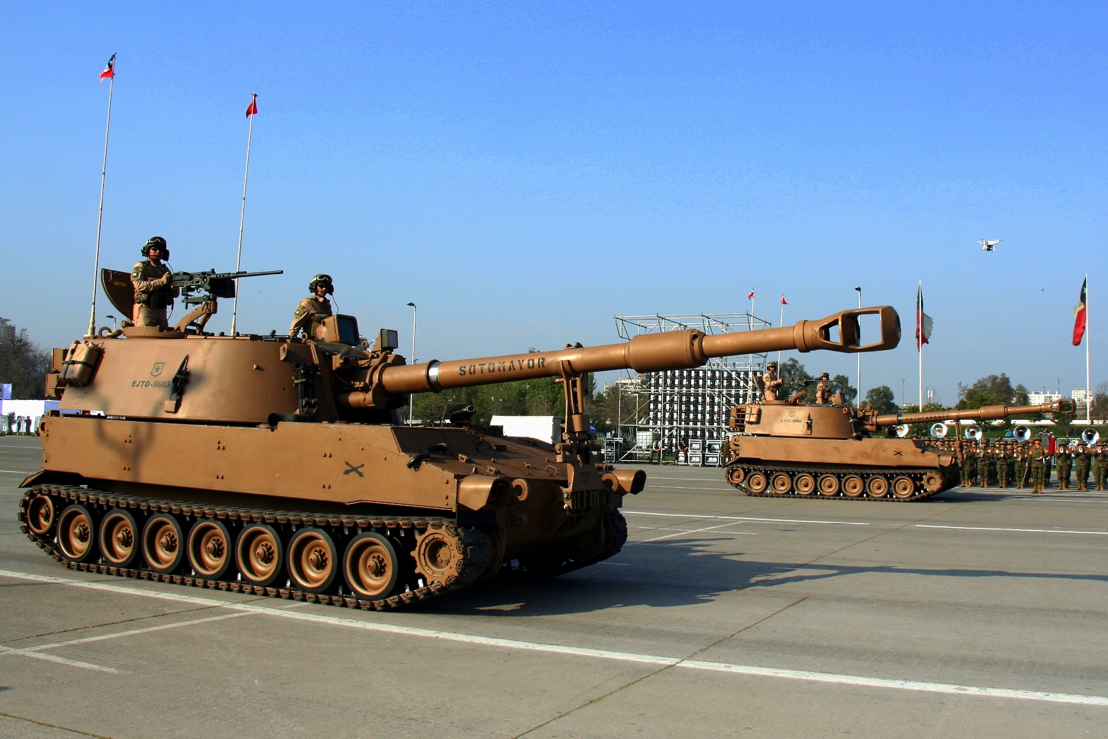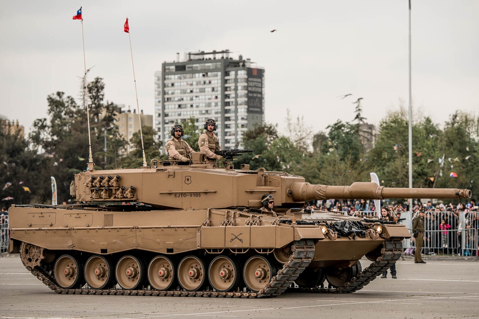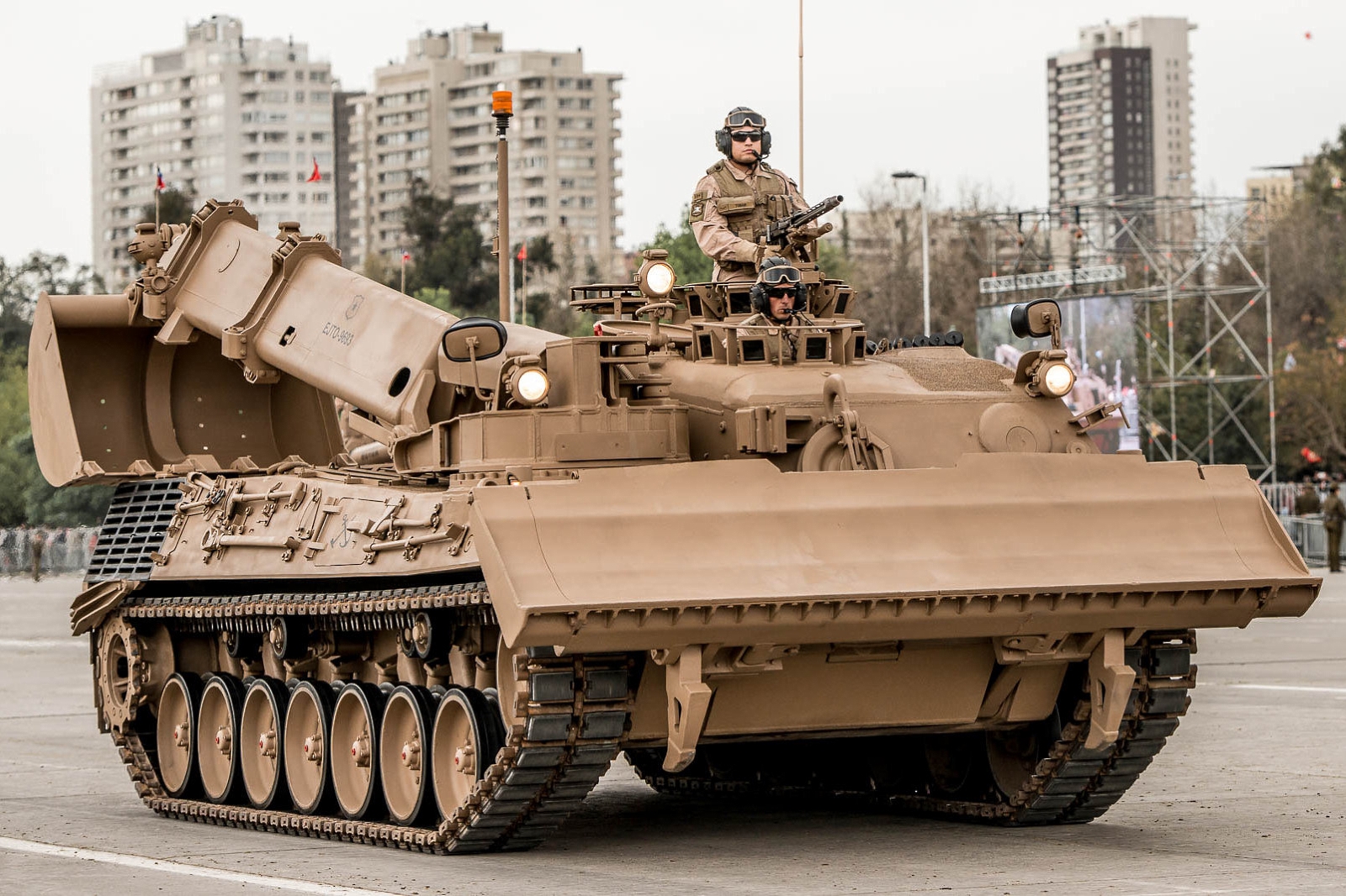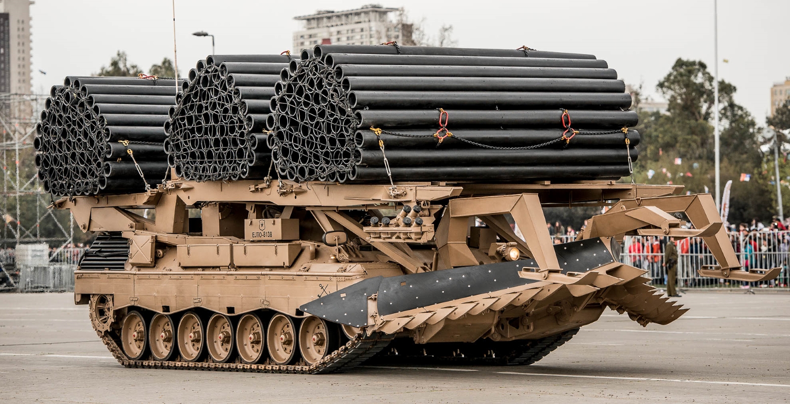 El clímax, sin embargo, llegaría al paso del subescalón Acorazado, representando a las unidades de la I División de Ejército con tres tanques Leopard 2A4, tres carros de infantería blindada Marder, piezas de artillería auto-propulsadas M-9 (155 mm) y tanques de ingenieros Lanzafagina (habilita vías para paso de vehículos) y Dash (con pala para movimiento de tierra y grúa).