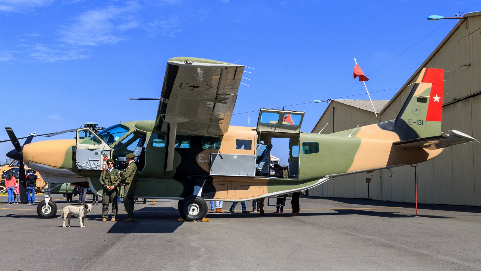 Los visitantes pudieron apreciar allí una pequeña muestra de material aéreo (un helicóptero Cougar, un entrenador Cessna 172 y transportes Aviocar, Caravan y CN235), de combate terrestre y de apoyo a las operaciones de vuelo e inspeccionar bien de cerca las aeronaves que el BAVE mantiene preservadas en su ante-jardín.