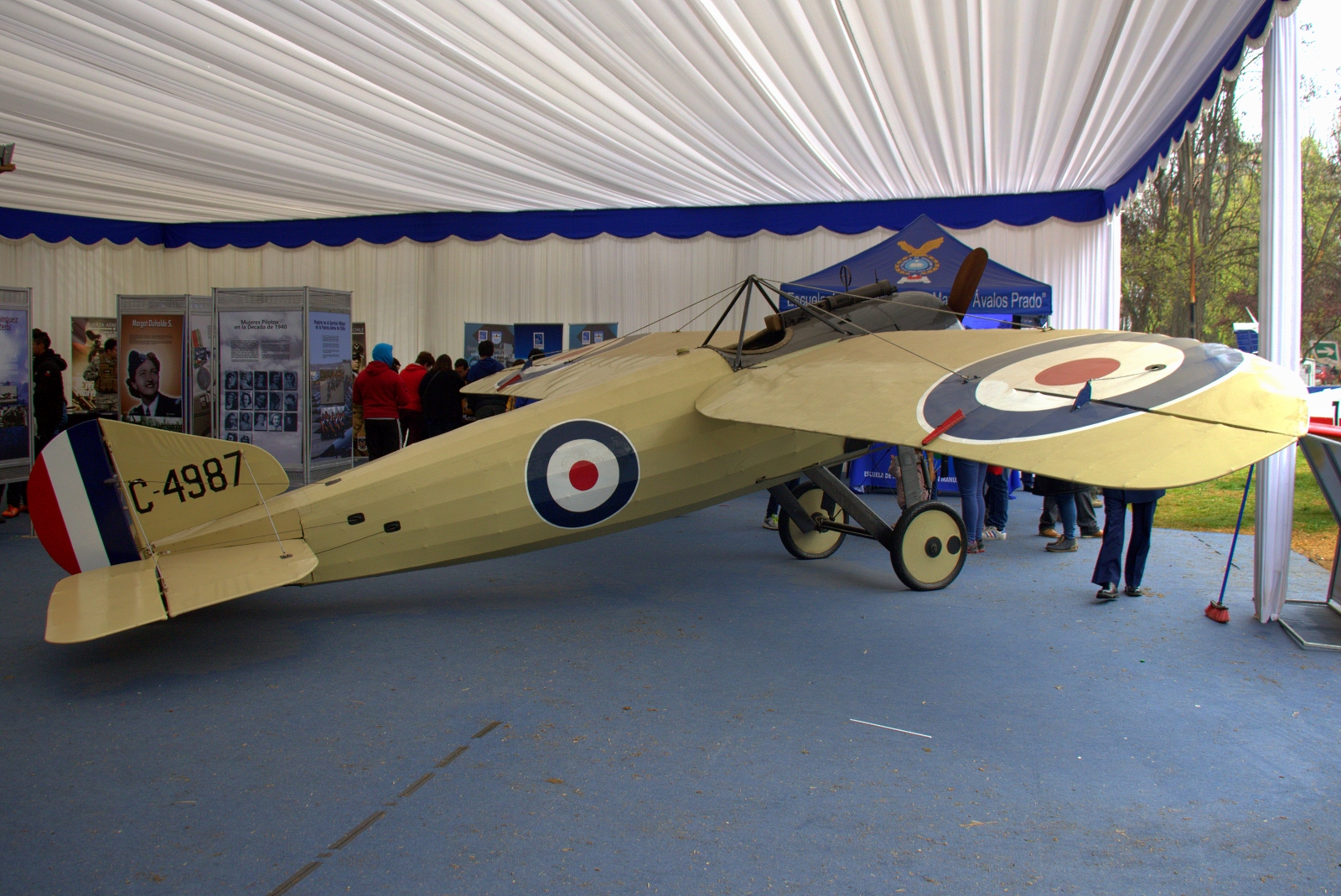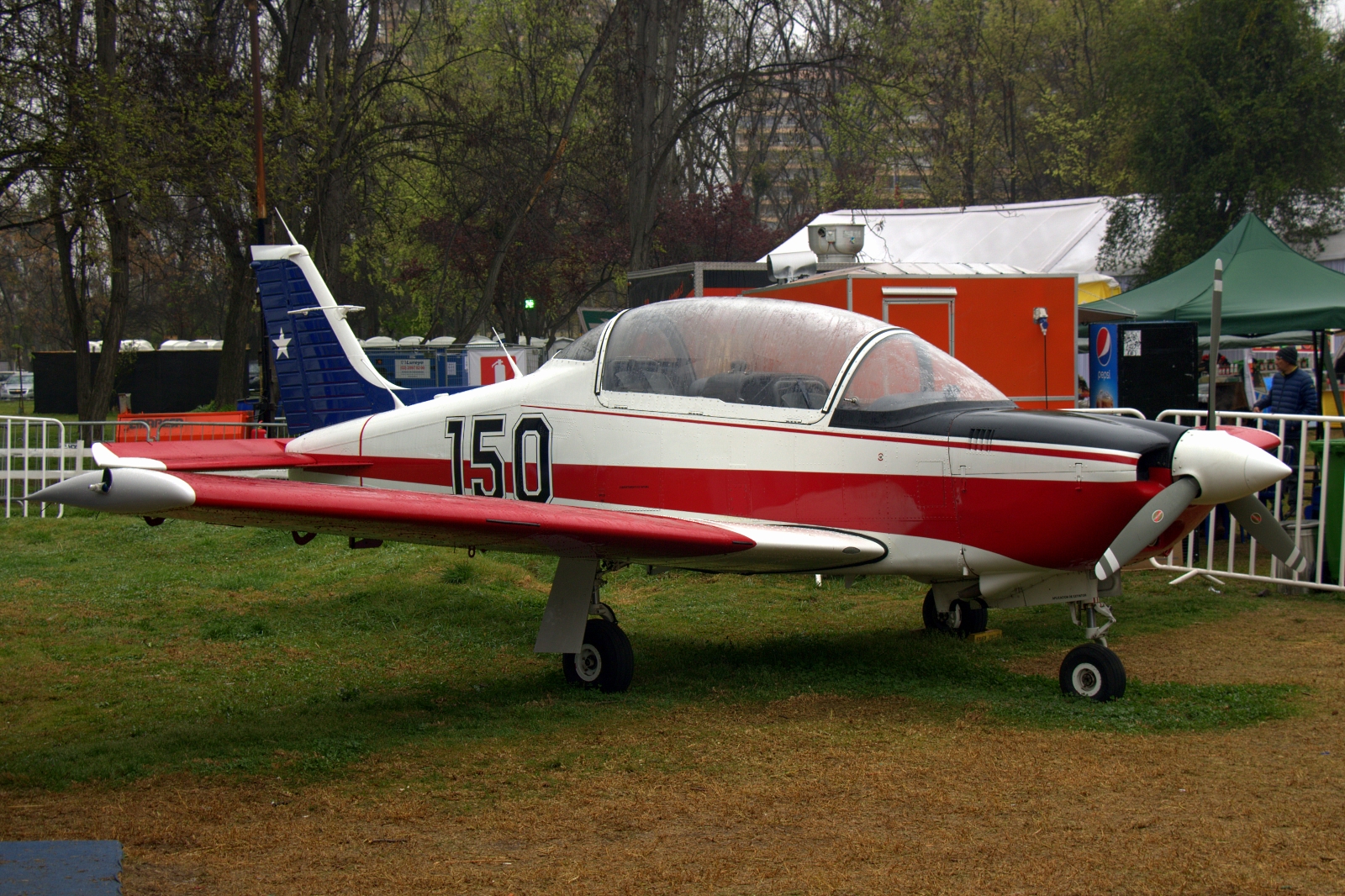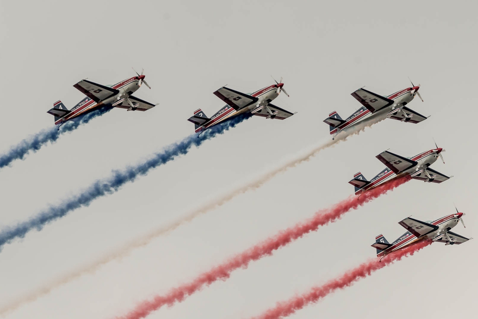 Al paso de la Escuela de Aviación, se hicieron presentes en cielo santiaguino los cinco Extra EA300L de la escuadrilla de alta acrobacia “Halcones”, al mando del capitán Joseph Suez Pavic, y 15 entrenadores T-35 Pillán de la propia academia, conducidos por el comandante de escuadrilla Ricardo Salazar Schiaffino.