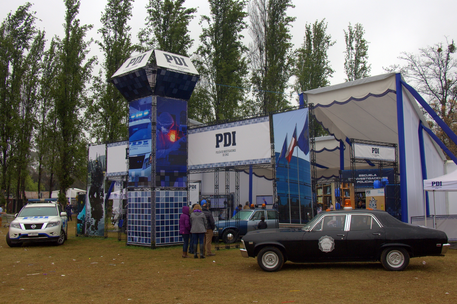 Las tres fuerzas armadas ocupaban un patio al centro-sur del parque, donde exponían equipamiento militar o promocionaban los servicios que brindan a la comunidad, y las fuerzas policiales se instalaron con un par de stands de diseño monumental alrededor del patio de comidas.