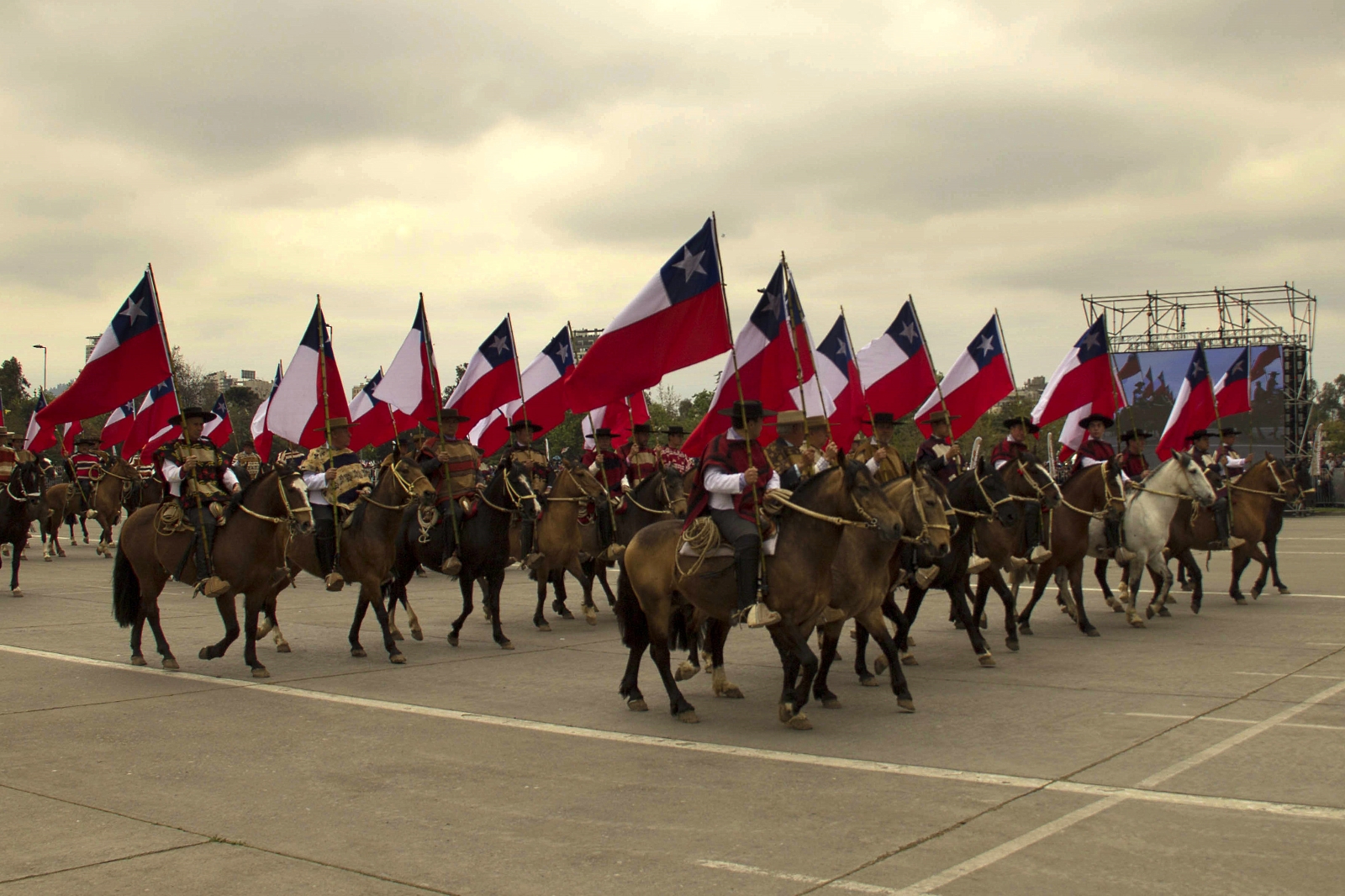 Innovando en esta fase de la ceremonia, la organización tradicionalista decidió rendir homenaje a la enseña nacional desfilando a caballo con las cuatro banderas históricas de Chile (las de la «Patria Vieja» de José M. Carrera, la «Patria Nueva» de Bernardo O’Higgins, del «Ejército de los Andes» de José de San Martín y de la «Escuadra Libertadora del Perú», también de O’Higgins) seguidas por 200 jinetes enarbolando banderas oficiales actuales.