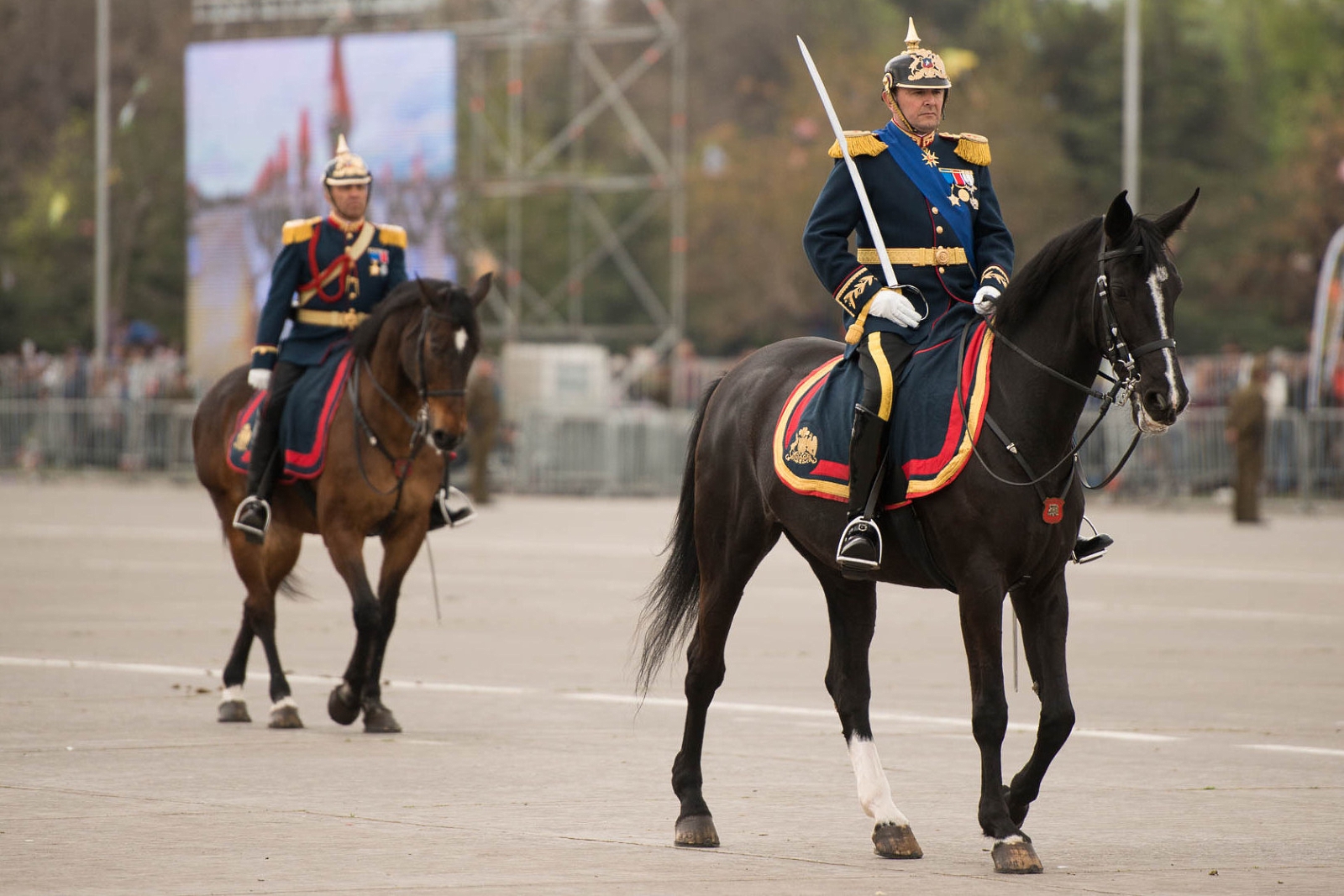 El general de brigada Óscar Mezzano Escanilla, Comandante General de la Guarnición de Ejército de la Región Metropolitana, volvió a encabezar la parada (por tercera vez consecutiva) y la puso en marcha tras solicitar la autorización presidencial para iniciar el dispositivo.