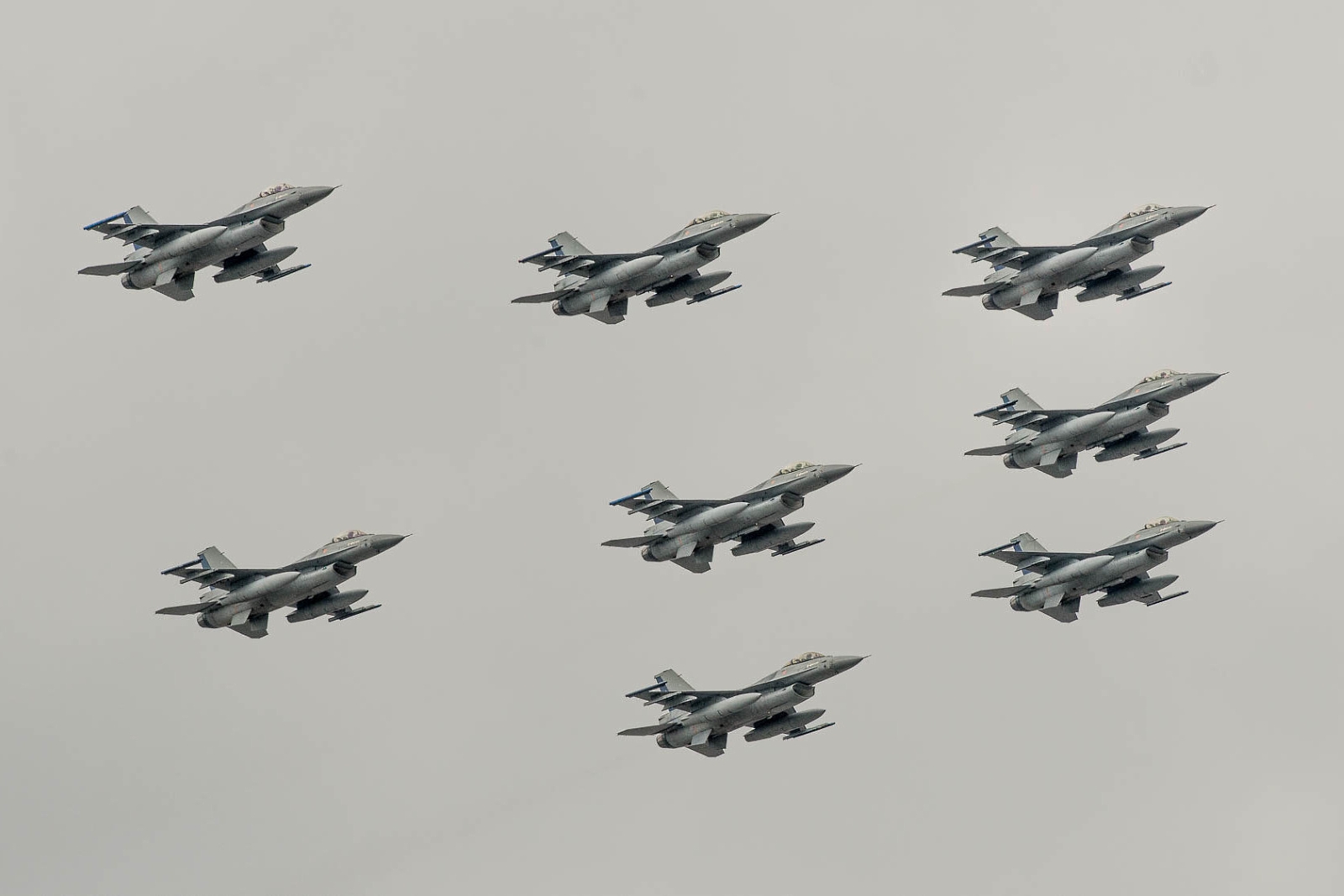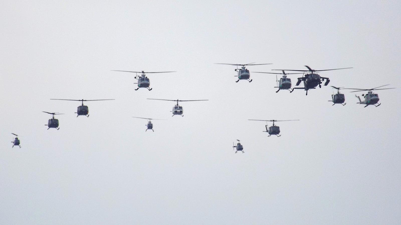 Contrariamente a lo previsto en la revista preparatoria, este sobrevoló con sólo ocho F-16MLU de la V Brigada Aérea de Antofagasta y una formación mixta de helicópteros integrada por un Blackhawk, cuatro Bell 412, cinco Hueys y tres JetRangers de los Grupos de Aviación números 5 de Puerto Montt y 9 de Pudahuel (apelativo de vuelo «Rojo»).