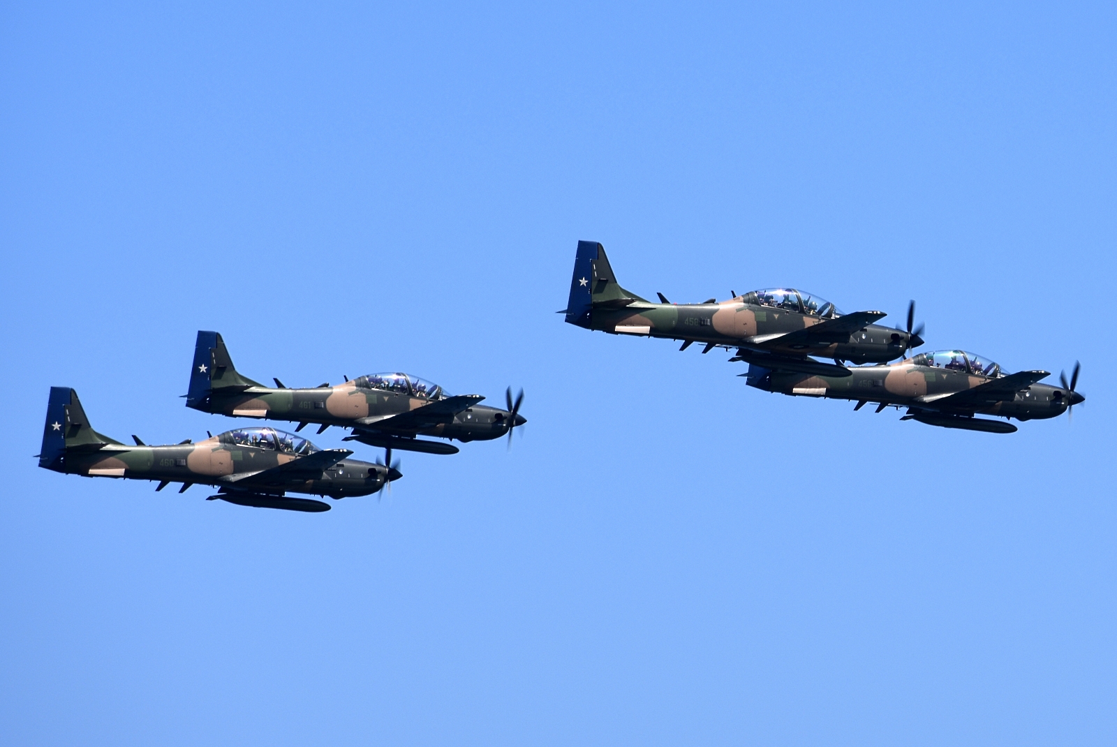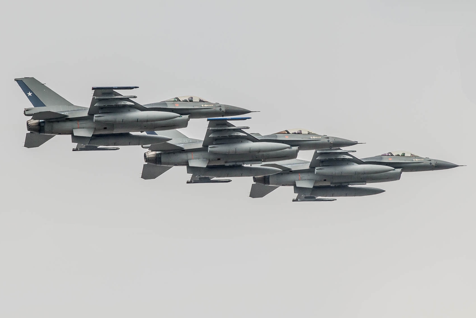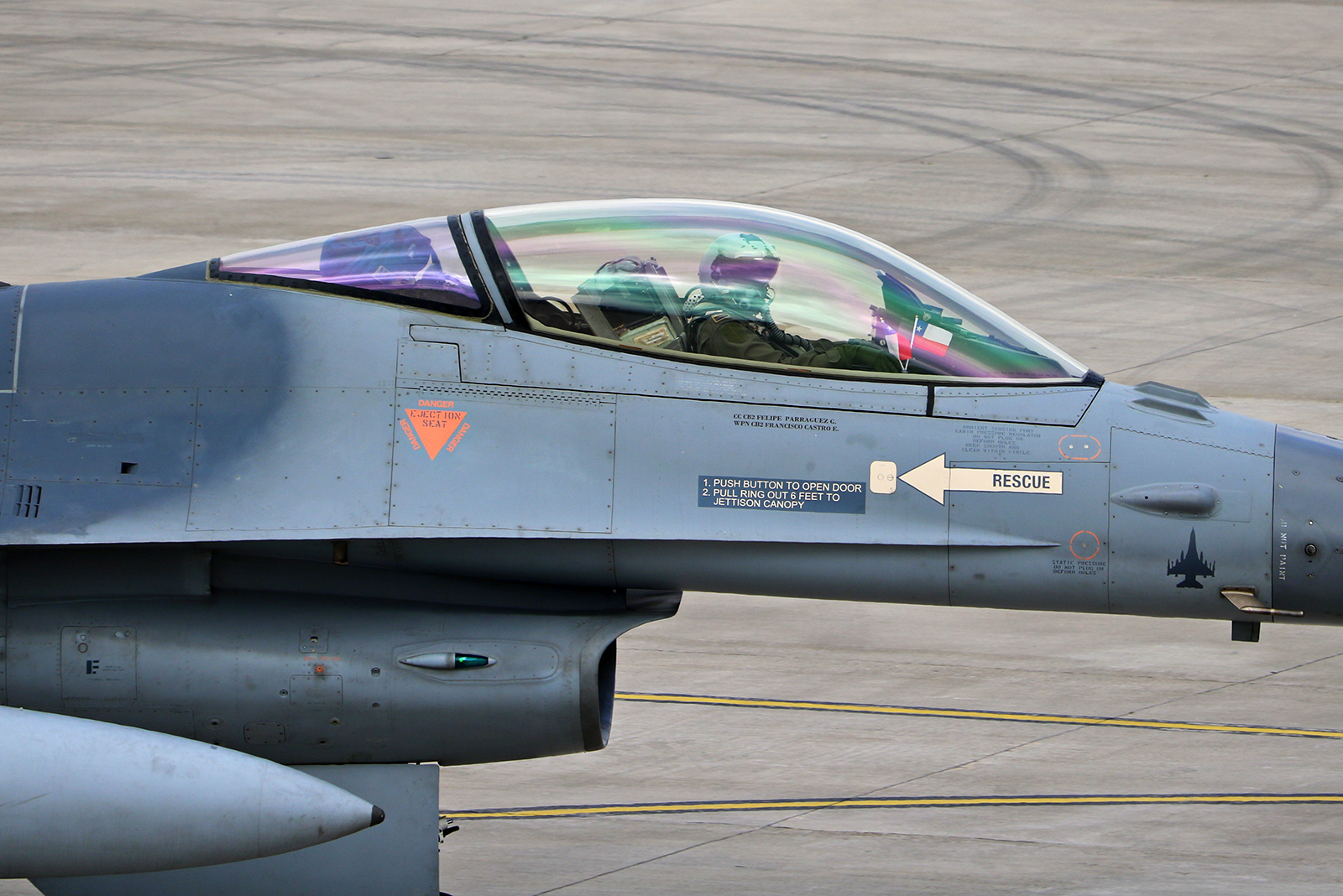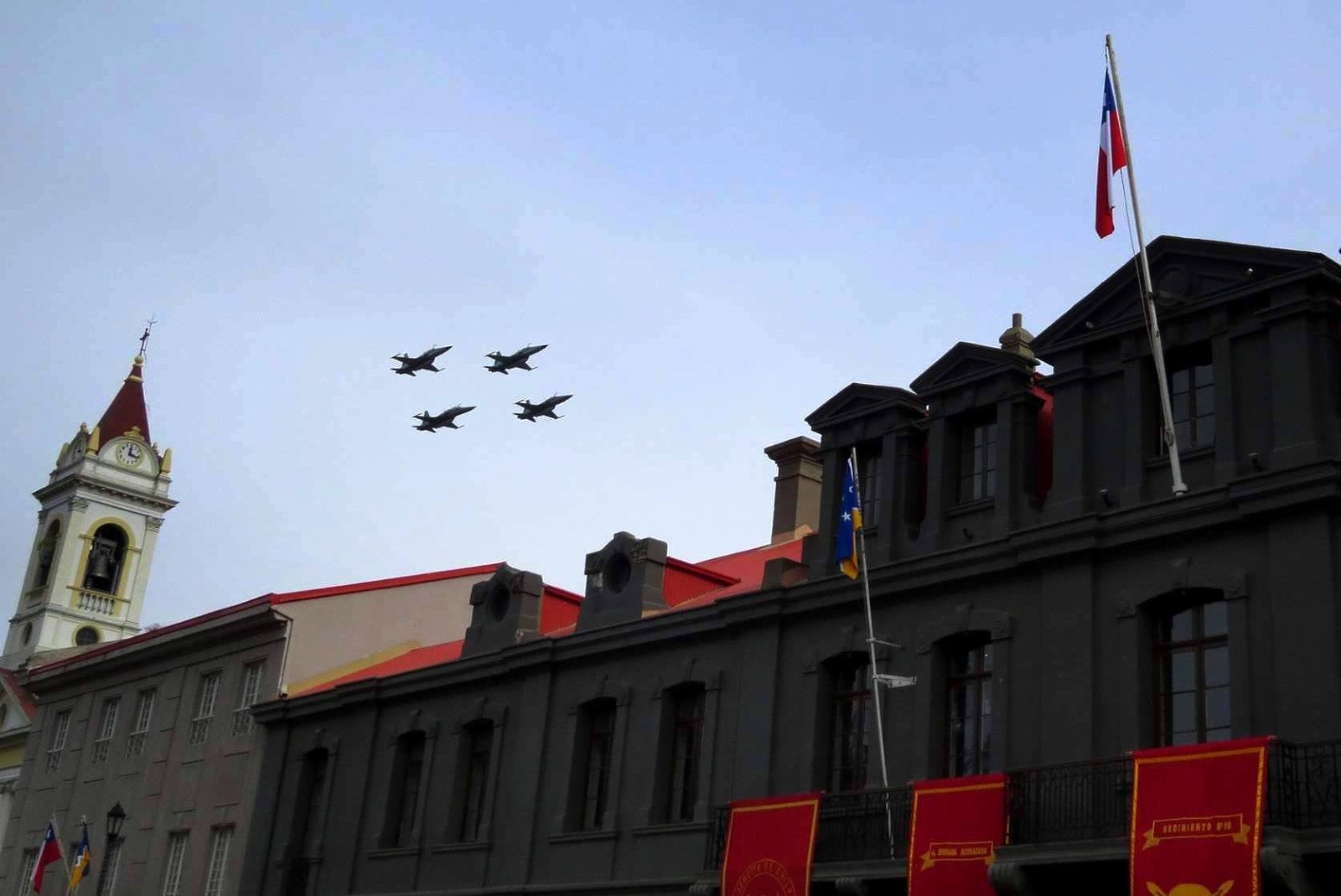 Y fue precisamente esa la celebración aeronáuticamente más llamativa ya que, al paso de un millar de efectivos terrestres por la Plaza Bernardo O’Higgins (Playa Cavancha), en los cielos se hicieron presentes cuatro A-29B Super Tucano del Grupo de Aviación No.1 y cuatro F-16C/D del Grupo 3, incluyendo el primer ejemplar de esa variante que habría sido repintado con el esquema convencional de la mayoría de los Vipers del mundo (dos tonos de gris con el timón pintado en azul).