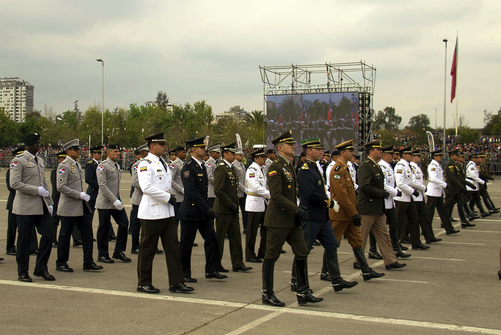 A los dos eventos que documentamos por primera vez en 2014 (Antofagasta y Punta Arenas, véase «Terremoto impone un marco dramático al centenario de la Gran Parada Militar chilena»), este año se agregó Iquique, capital de la I Región de Tarapacá.