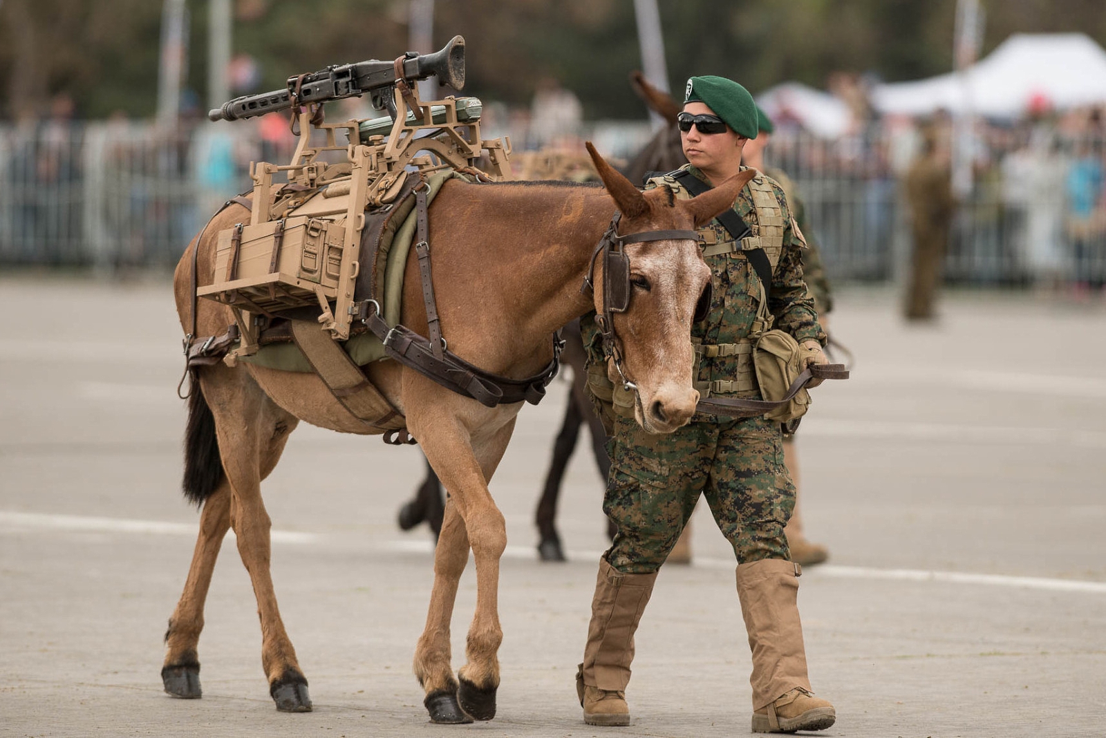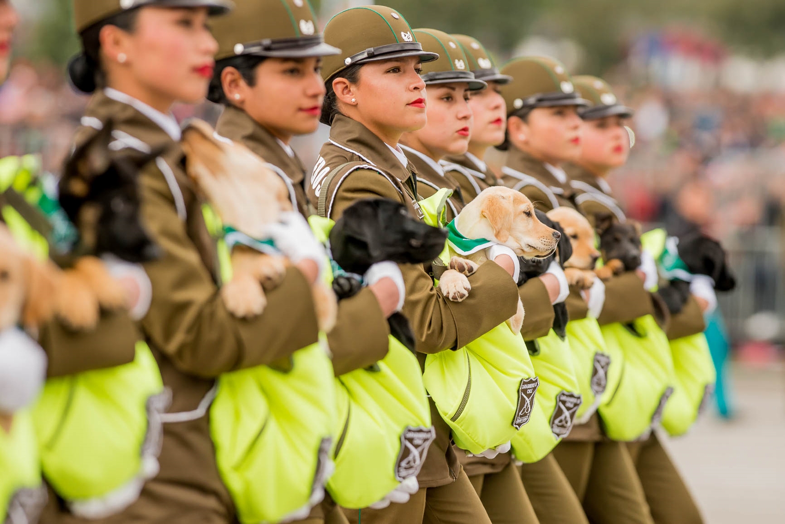 Montando a caballo, desfiló a continuación la Escuela de Caballería «General Óscar Cristi Gallo», un escuadrón de orden y seguridad, un escuadrón de la guardia del Palacio de la Moneda y el conjunto acrobático Cuadro Verde de Carabineros de Chile.