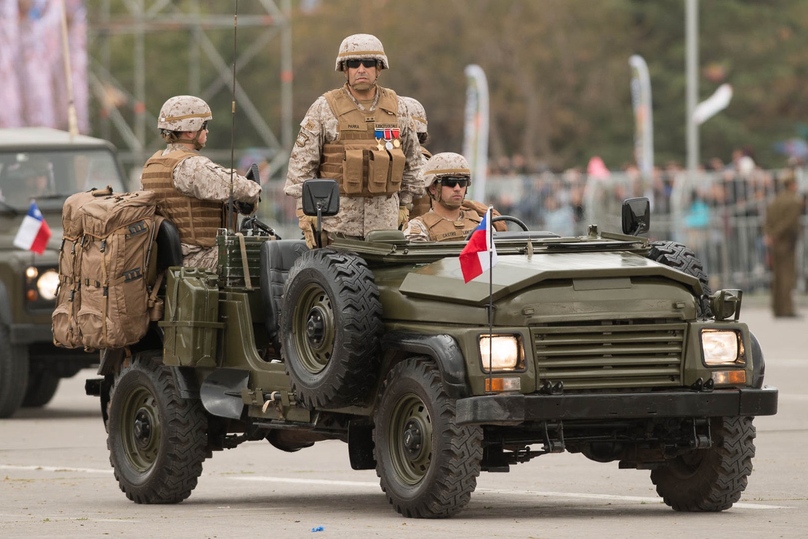 También se presentaron vehículos Humvee de la BOE y el subescalón Apoyo a la Comunidad, integrado por vehículos de transporte y telecomunicaciones, de policía militar y sanidad, y formaciones representativas de las 52 brigadas de refuerzo para la lucha contra incendios forestales, de destacada actuación en los grandes incendios forestales del verano pasado (véase «FF.AA. entran de lleno a la lucha contra incendios forestales en Chile»).