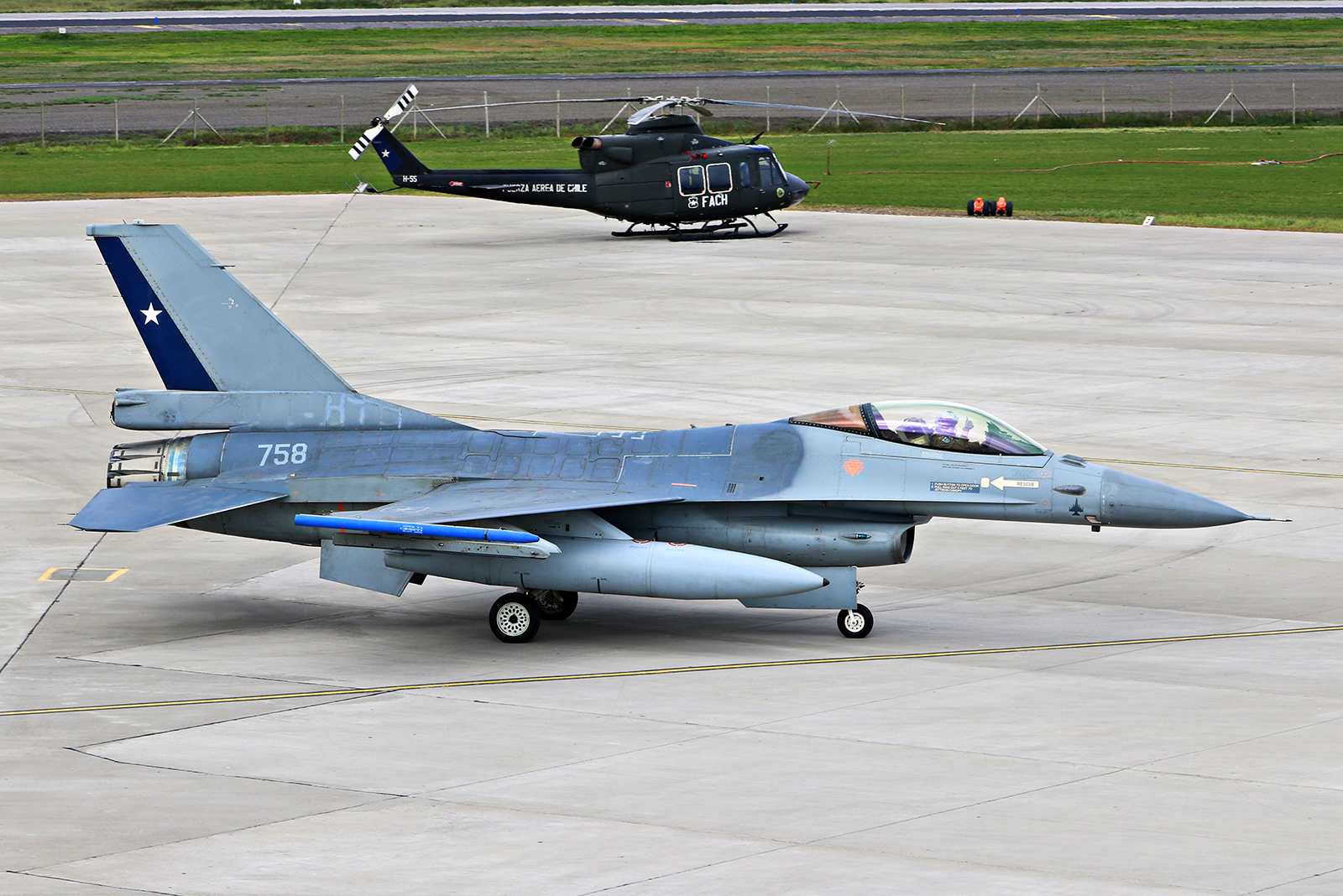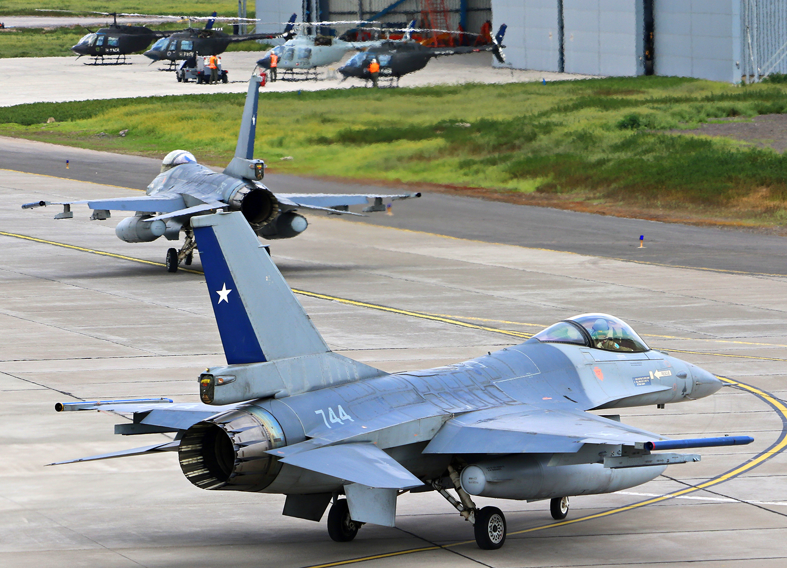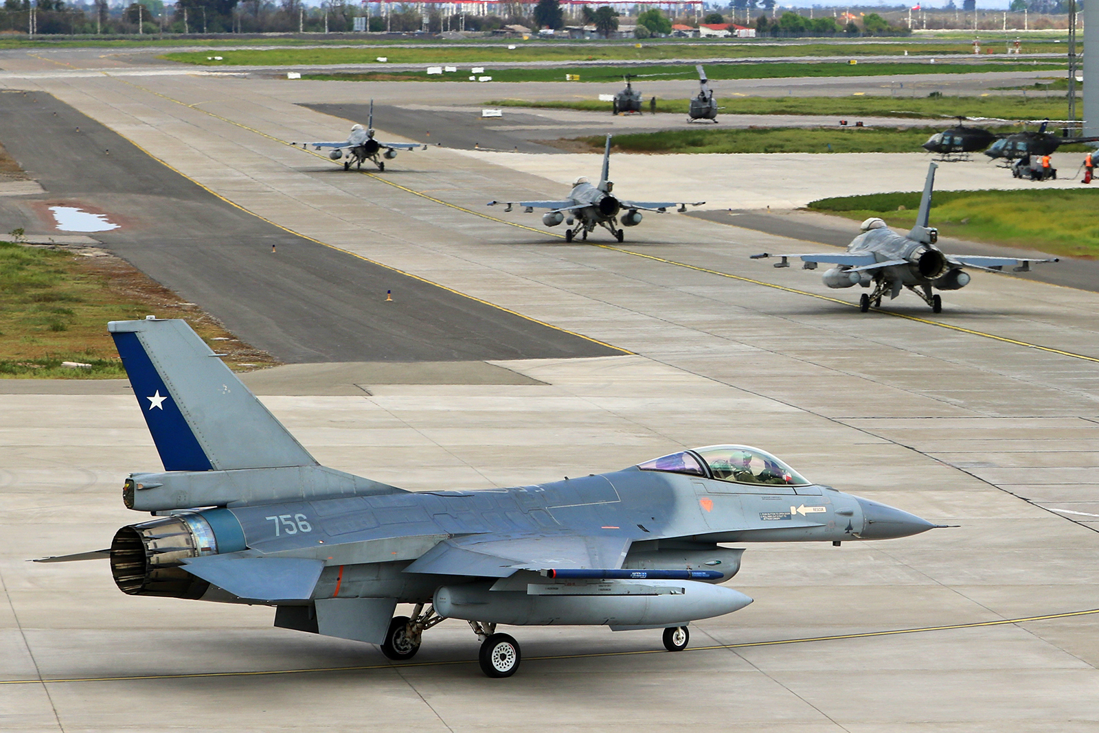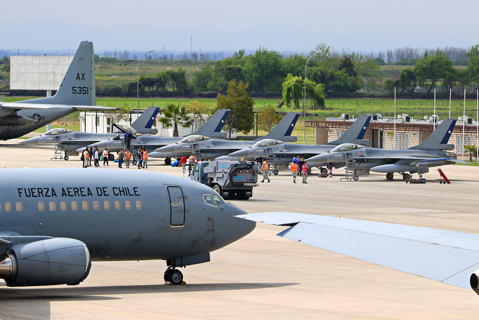 Al paso en tierra del escalón Fuerza Aérea, aparecieron seguidamente cuatro F-16MLU Fighting Falcon de la V Brigada Aérea de Antofagasta, un KC-135E Stratotanker y dos KC-130R Hercules del Grupo 10 y, finalmente, un S-70 Blackhawk, cuatro Bell 412, cuatro UH-1H Huey y dos Bell 206 JetRanger III del Grupo 9.