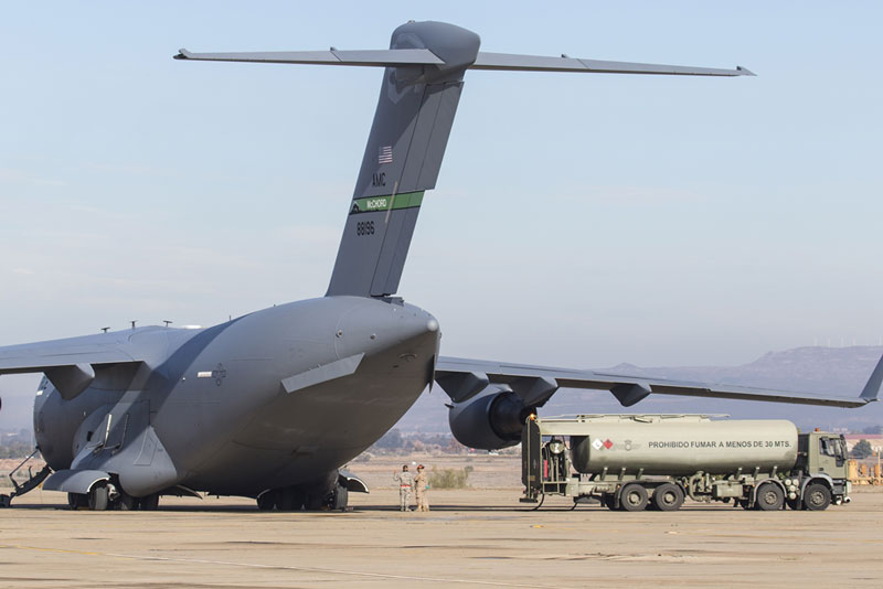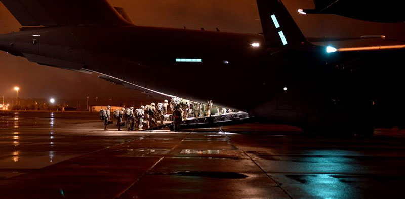 Los C-17A empleados para la operación pertenecen a las bases conjuntas de Charleston (Carolina del Sur), Lewis-MacChord (Washingon) y Elmendorf-Richarson (Alaska), habiéndose desplazado a Pope para recoger al personal paracaidista. En las últimas horas del día 3 de noviembre partieron las aeronaves desde Pope Airfield – Fort Bragg hasta CENAD – San Gregorio, para realizar un vuelo sobre el Atlántico Norte de unas diez horas aproximadamente.