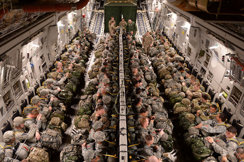 Los efectivos aerotransportados volaron desde Pope Airfield, integrado dentro de las instalaciones de Fort Bragg (Carolina del Norte – Estados Unidos). Lo hicieron en siete aviones de transporte Boeing C-17A Globemaster III de la USAF, previamente desplegados para participar junto a la 82nd Airbonbe Division en Ultimate Reach 2015[1]. Ejercicio que se desarrolló entre los días 2 y 8 de noviembre de 2015. Como parte de la contribución de Ultimate Reach a Trident Juncture, los C-17A transportaron una fuerza de 500 paracaidistas, entre los que estuvieron integrados los miembros de la BRIPAC española.