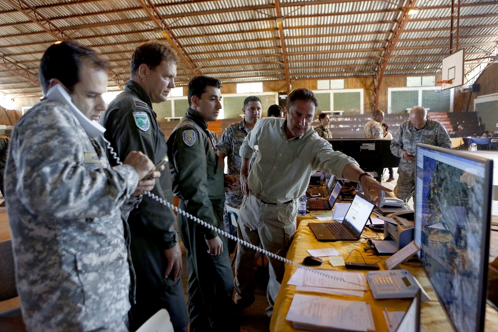 Según comunicados del Ministerio de Defensa Nacional de Chile que dirige el radical socialdemócrata José A. Gómez U., los militares fueron movilizados poco después que tres regiones (Metropolitana, O’Higgins y Maule) fueron declaradas bajo un «estado de catástrofe» el viernes 20 de enero. Además de brigadas forestales militares, unidades fundamentales de emergencias y muchos otros medios terrestres que superaron los 8.000 hombres y mujeres, el despliegue incluyó una buena cantidad de aeronaves militares, comenzando con 19 el lunes 23, escalando hasta 30 el martes 31 y descendiendo hasta 26 el viernes 10 de febrero (última fecha informada por el ministerio).