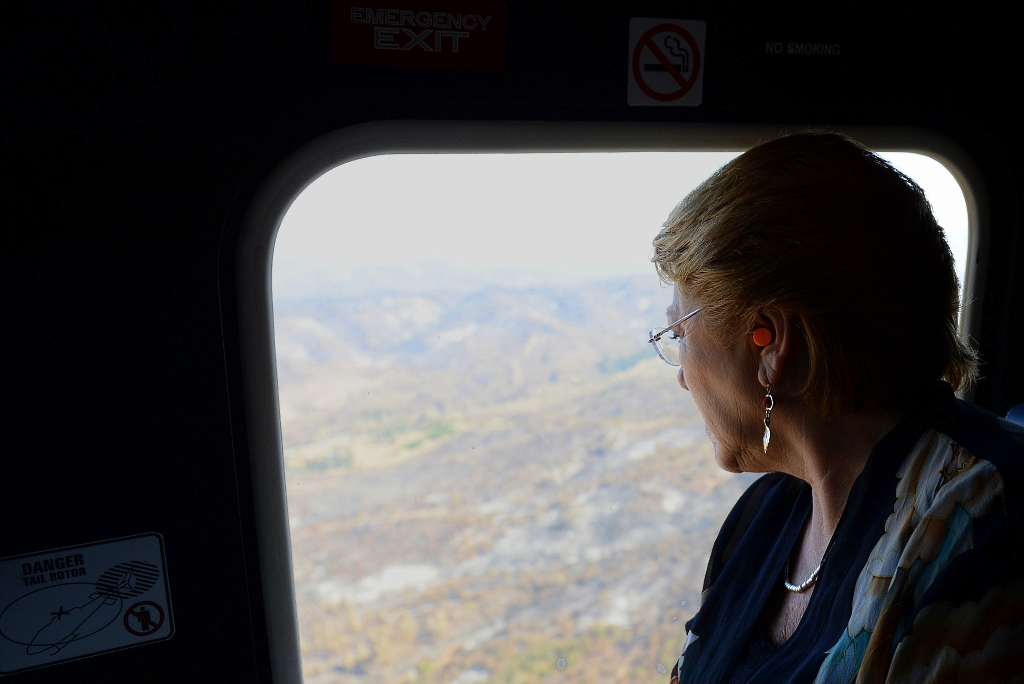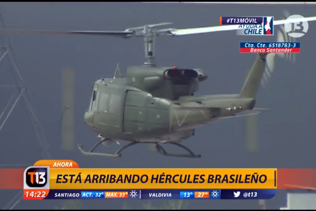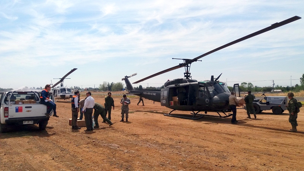Los helicópteros militares también tuvieron harto protagonismo, realizando misiones de asistencia humanitaria, vigilancia ciudadana y del fuego en todas las regiones afectadas. Las autoridades también los aprovecharon para sus desplazamientos, transformándolos en el principal medio de transporte aéreo para la Presidente Michelle Bachelet, sus ministros, los comandantes en jefe de las fuerzas armadas y de seguridad y los comandantes de las fuerzas desplegadas en las zonas de catástrofe.