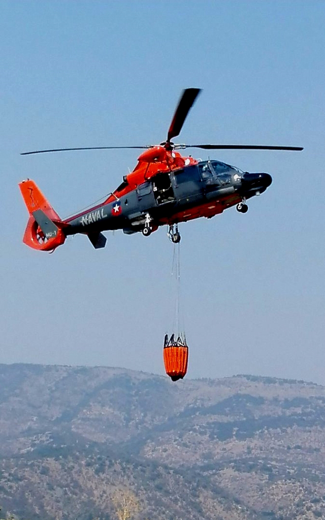 Lo más interesante de las alas rotativas, sin embargo, pasó algo desapercibido en los medios. Pero un AS365N Dauphin del Destacamento Aeronaval de Talcahuano participó efectivamente en la lucha contra algunos de los incendios que afectaron las regiones de O’Higgins y el Maule. El S-70A Blackhawk de la FACH, por su parte, también realizó misiones nocturnas de vigilancia de fuego, demostrando la capacidad de emplear visores de luz residual.