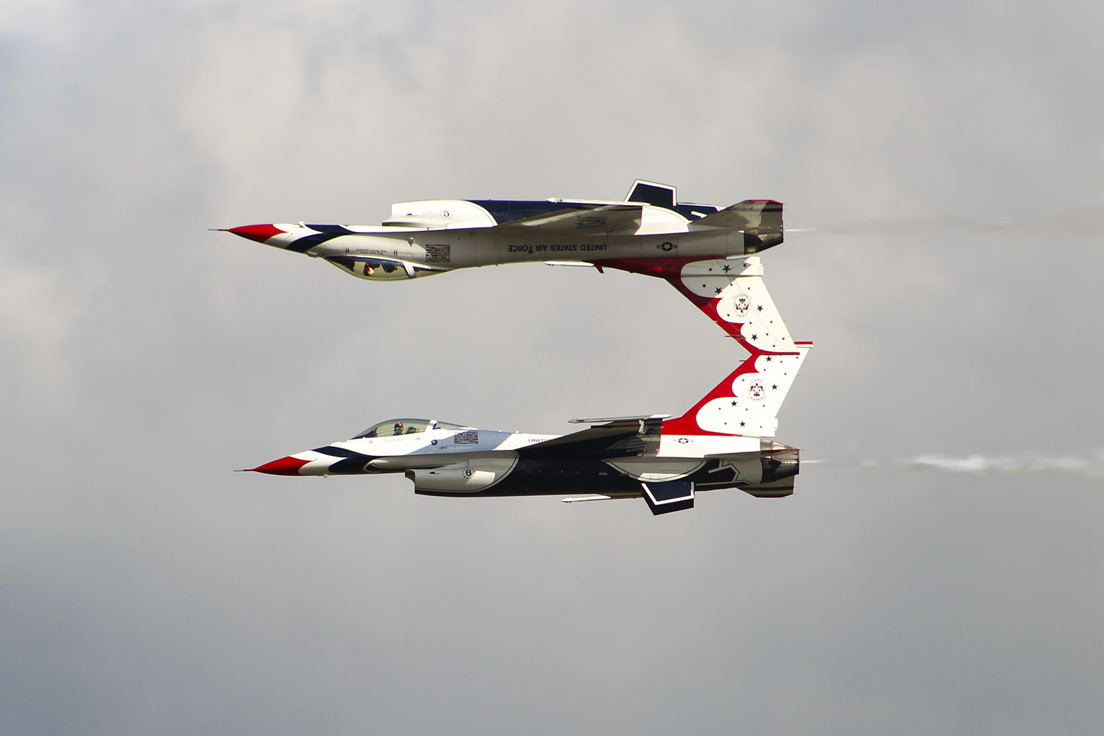 Los solistas Thunderbirds durante un pasaje en espejo (foto: Javier Vera Martínez).
