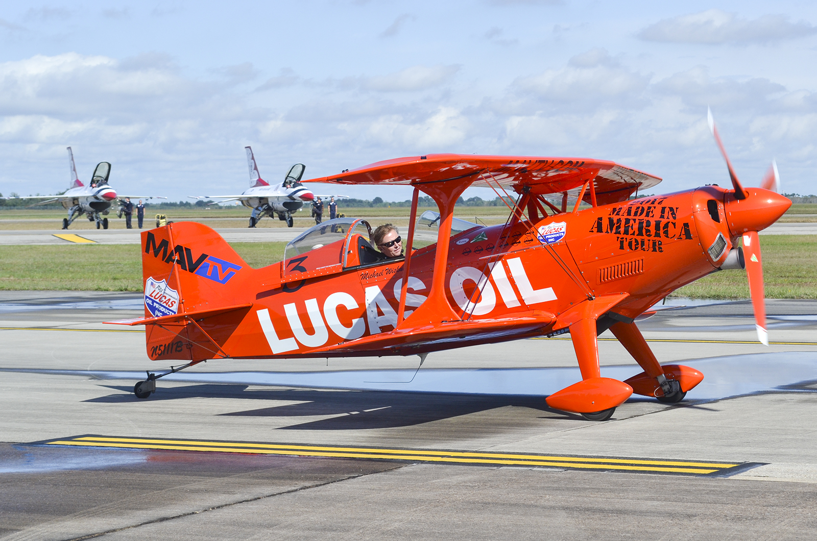 Muy destacada fue la participación del piloto acrobático Mike Wiskus, volando su Pitts S-1 Special del team Lucas Oil y realizando maniobras de alta precisión que no pasaron inadvertidas para los asistentes al evento.