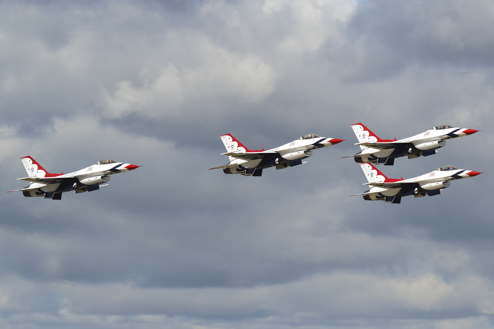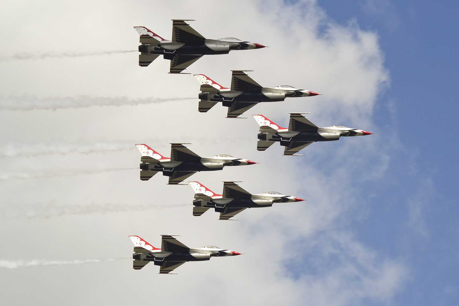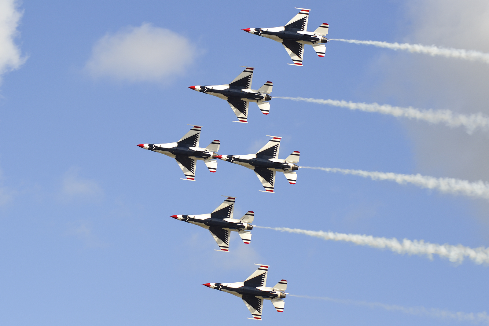 Los F-16 de los Thunderbirds durante un pasaje en formación escalonada (foto: Javier Vera Martínez).