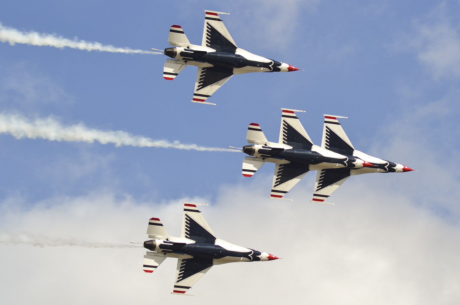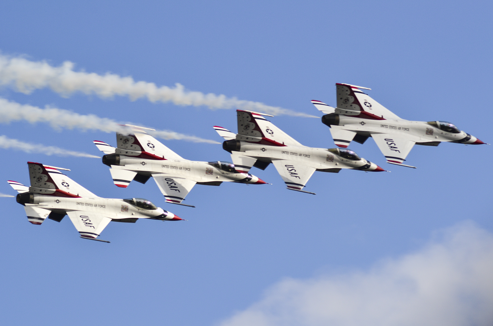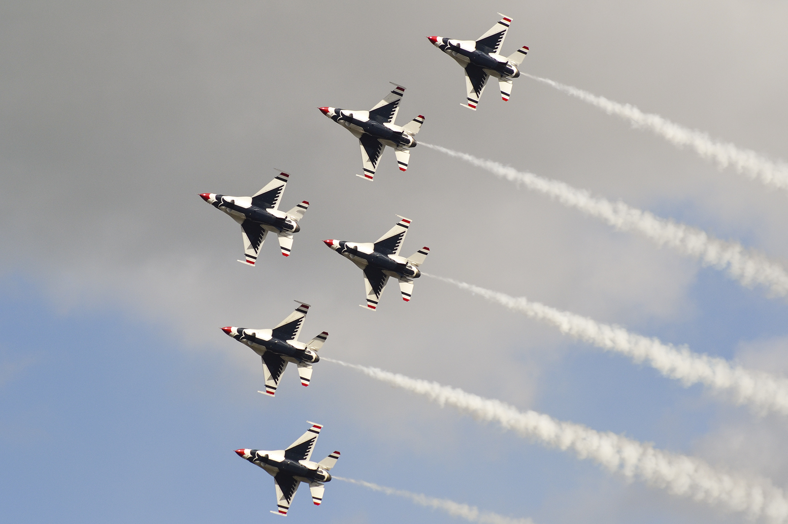 Los F-16 de los Thunderbirds durante un pasaje en formación escalonada (foto: Javier Vera Martínez).