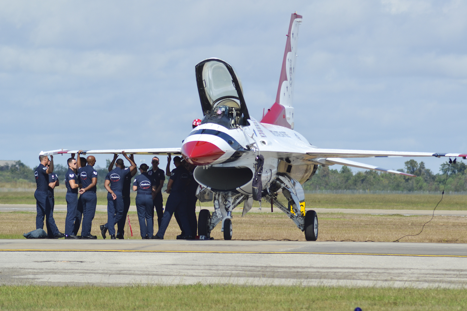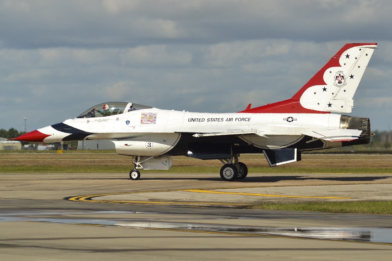 El numeral #3 de los Thunderbirds carreteando en tierra al final de la exhibición del domingo 22 (foto: Javier Vera Martínez).