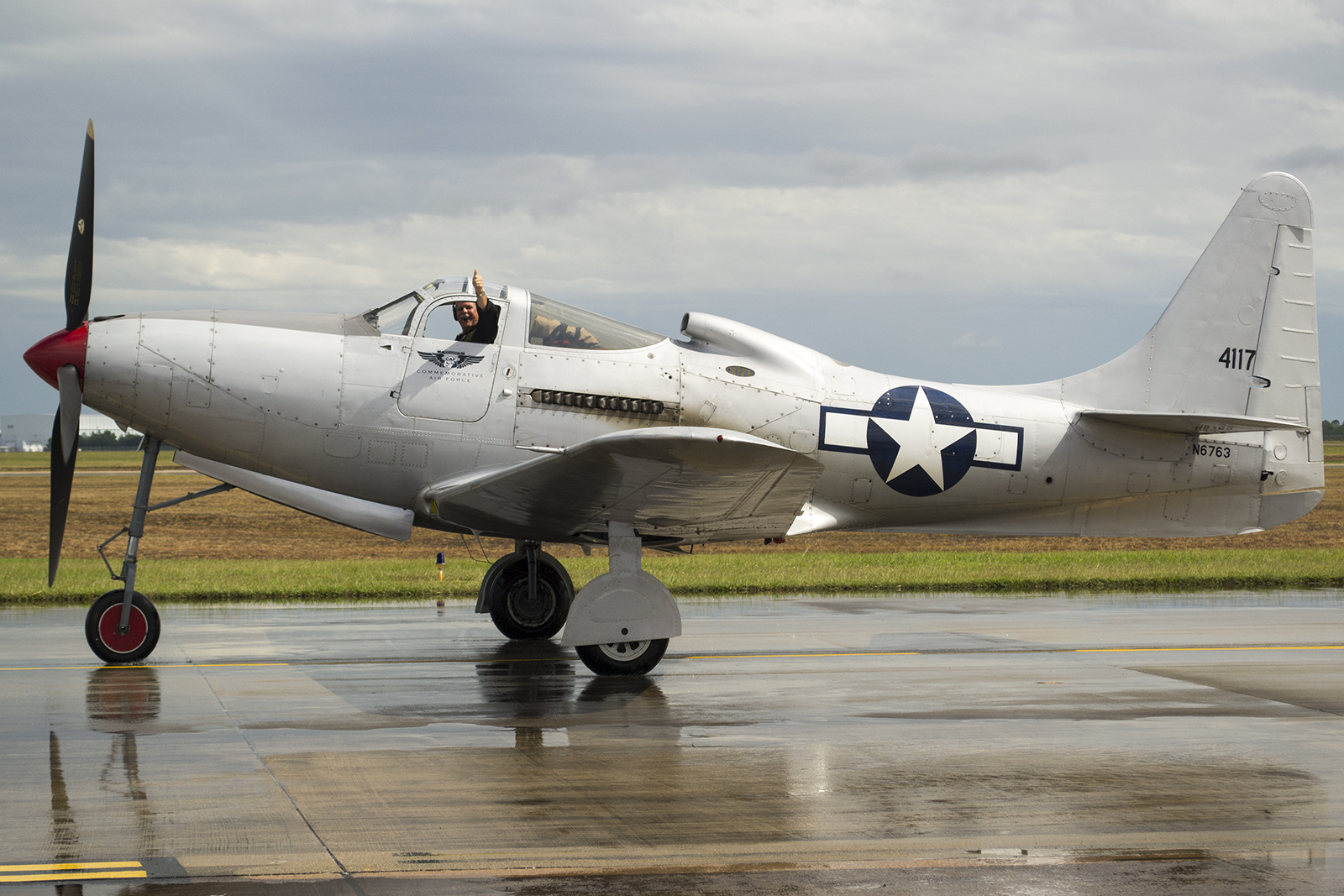 El piloto del P-63 King Cobra saludando a la cámara (foto: Javier Vera Martínez).