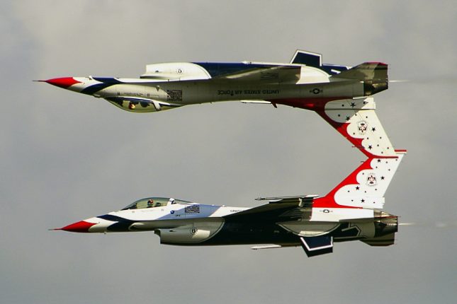 La guinda de la torta la puso la presentación del Escuadrón de Demostración Aérea “Thunderbirds”, el grupo de vuelo acrobático de la USAF.