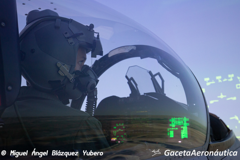 Cuando el piloto conecta la presentación de datos en el visor por primera vez, la reacción inicial es adaptar su vista y su cerebro al nuevo input de información. La transición es fluida y rápidamente el piloto asimila el sistema. Durante esta primera toma de contacto el instructor desgrana poco a poco las enormes posibilidades del nuevo sistema, trabajando con varios casos de designación de blancos en tierra mediante el Litening, designación de blancos aire-aire con al radar o gestión de información proveniente de aviones cooperantes como un AWACS aliado.