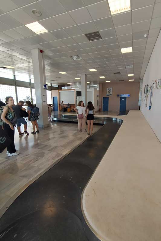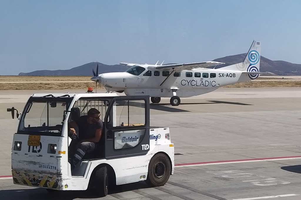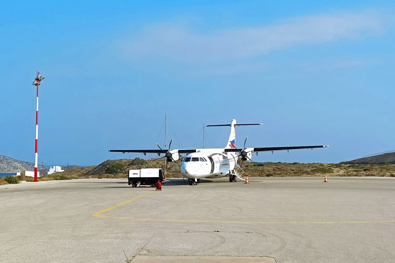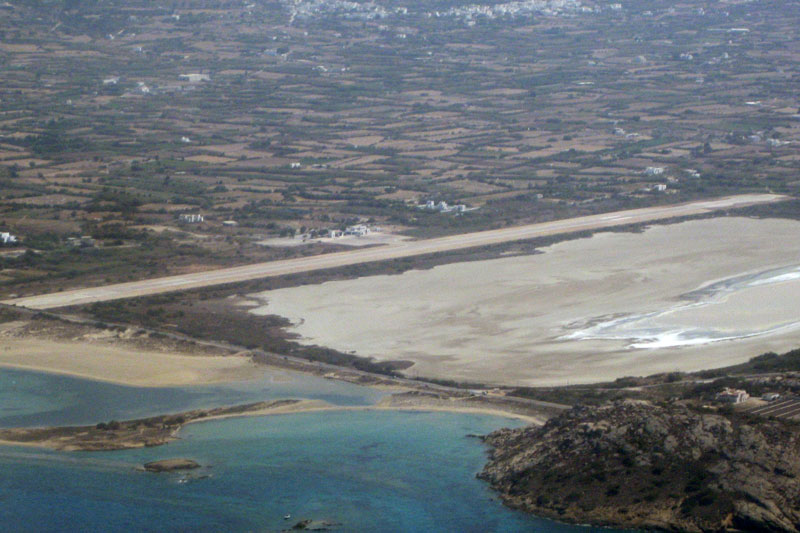 Naxos es una de las islas del archipiélago de la Cícladas con mayor extensión superficial. Y su aeropuerto JNX/LGNX nos remite a otras épocas. El edificio principal, encalado y con un estilo que no desentona en la clásica arquitectura de las islas del mar Egeo es del año 1992. Llama la atención del viajero por lo pintoresco y lo casero de la operación aerocomercial, cosa no tiene precio: Llegar o salir de Naxos es volar a otro tiempo, donde lo único que desentona es el estricto control de seguridad.