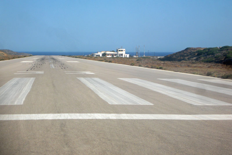 El aeropuerto de Kastellorizo / Megisti (KZS-LGKJ) es definitivamente de otra época, y la terminal merece una visita per se. Ubicado en el centro de la isla y con la pista en orientación 13-31, ésta dispone de 800 metros de longitud. Las características de las infraestructuras y su ubicación, sumadas a la meteorología reinante, hacen de Kastellorizo el aeropuerto comercial más complicado para el aterrizaje de toda la Hélade.
