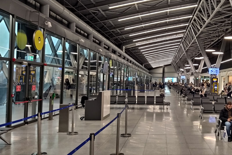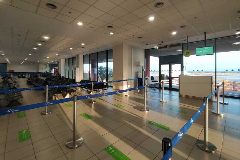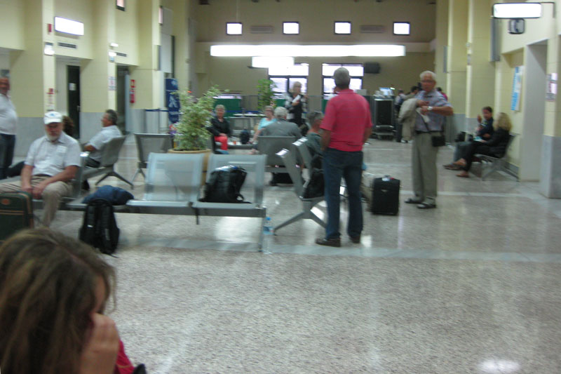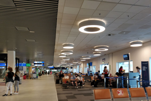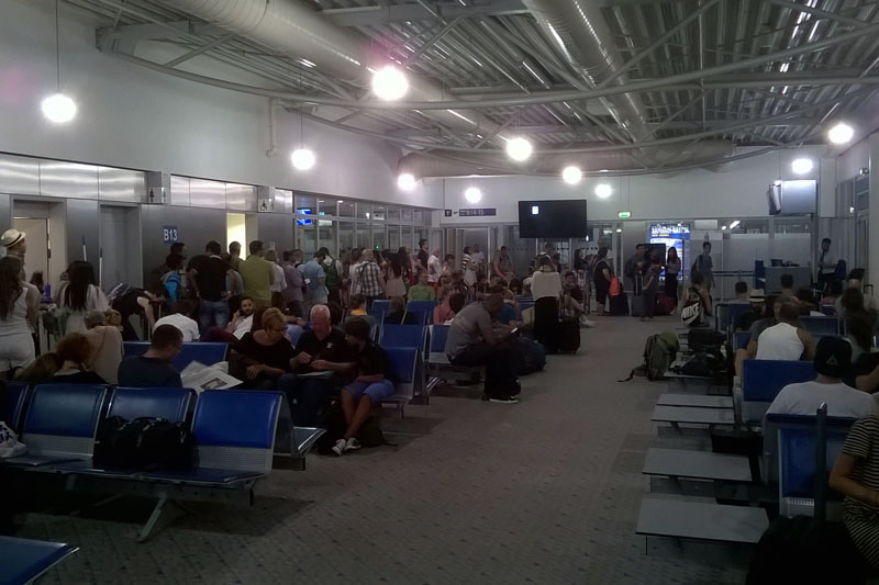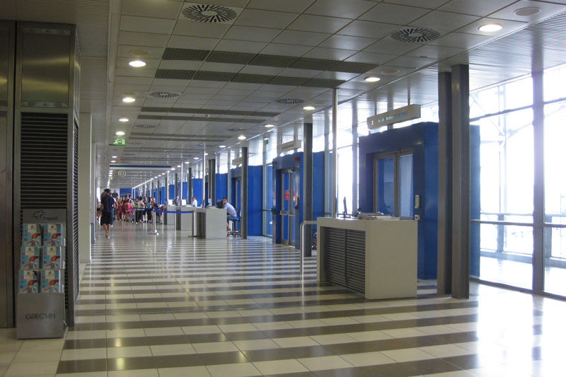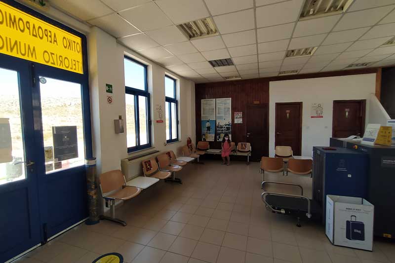En este caso, queda claro que la capacidad de las instalaciones está completamente superada, y atienden con dificultad aviones turbohélices con capacidad de 50 plazas o incluso menor. Las pintorescas facilidades cuentan con la decoración de otra época, donde destacan antiguos posters de los años ochenta y noventa, con las rutas y aviones operados por Olympic por aquel momento.