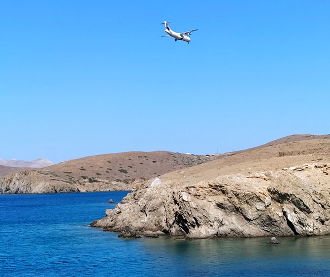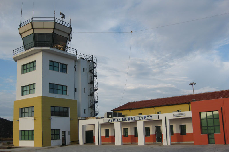 El aeropuerto de la isla de Syros rápidamente llama la atención del viajero atento, ya que el aterrizaje se produce sorpresivamente cuando aun la altura sobre el mar es notoria. La razón es simple, la pista 18-36 se encuentra a una altura de 236 pies (72 m) sobre el nivel del mar.