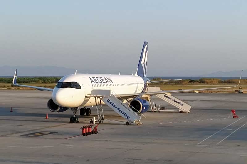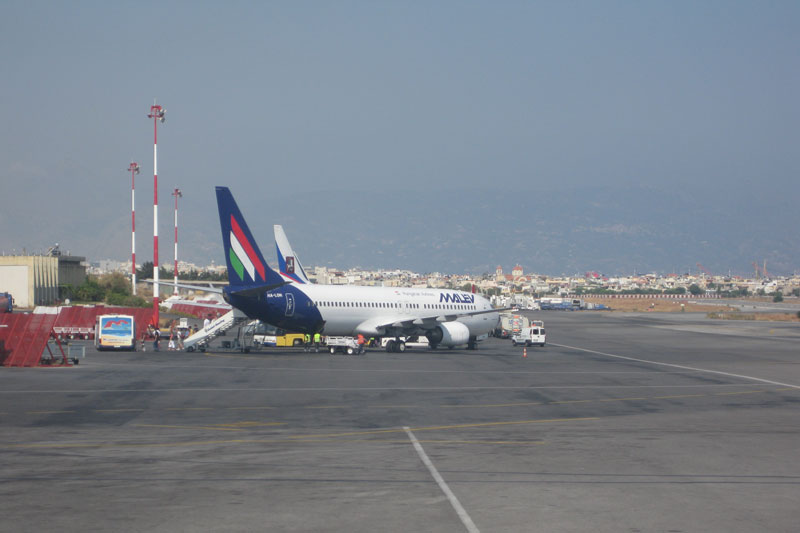 La isla de Creta, ubicada al sur del mar Egeo, dispone de tres aeropuertos principales, situados aproximadamente en el oeste, centro y este de la isla. Es principal de ellos es el Nikos Kazantzakis HER/LGIR de Heraklion (centro de la isla) y es el que sirve a la capital. Las instalaciones actuales datan de 1972 son pequeñas y algo vetustas, ya que conocieron años mejores, pero sirven a su función y soportan la circulación actual de pasajeros que superó los 7,9 millones anuales en 2018.