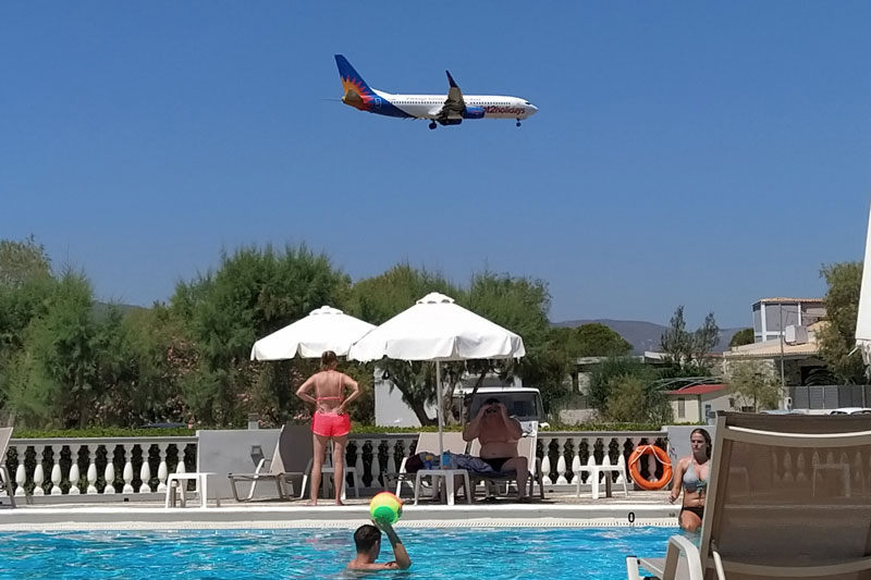 Por otra parte, los bañistas de la playa de Kalamaki tienen una inmejorable perspectiva de toda la aproximación a la pista 34, con inmejorables vistas de la final. Dado que el tráfico es alto, 13.196 movimientos en 2019, el entretenimiento es continuo.