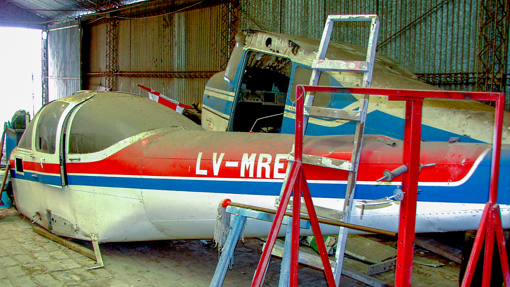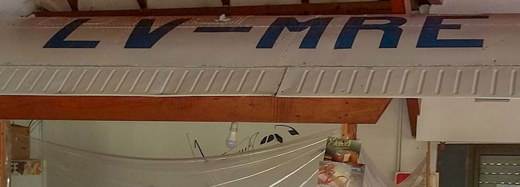 Recuperado a Ezpeleta (B.A.), con el fuselaje guardado dentro de un hangar del club y el ala derecha decorando la barra del restaurante hasta 07/2021.
