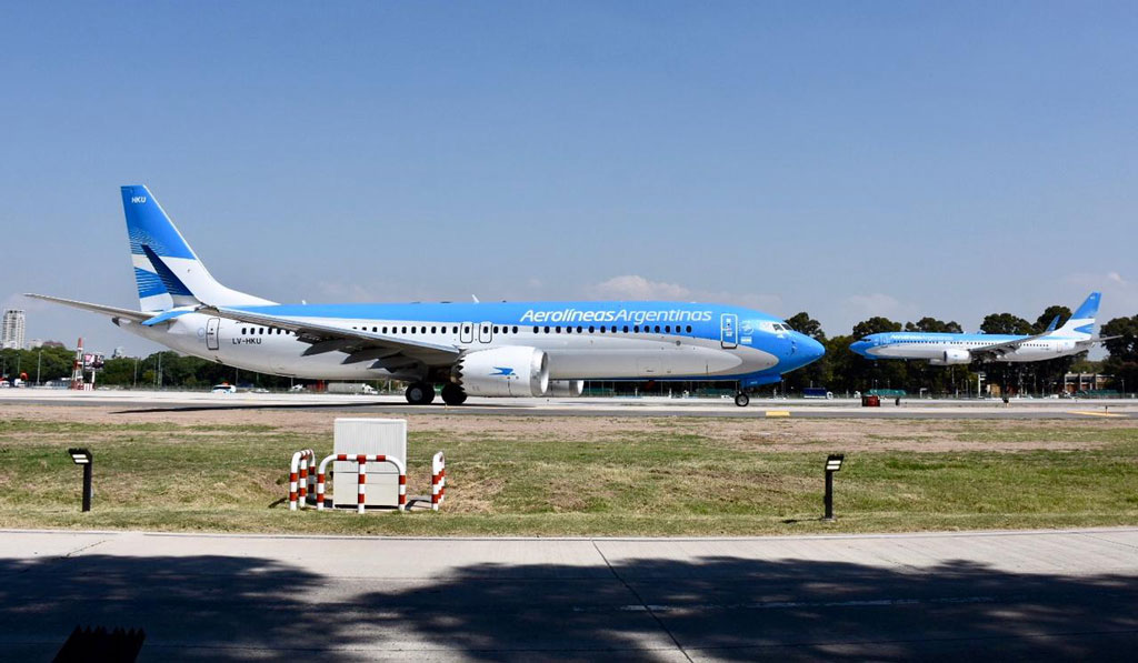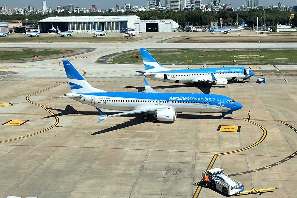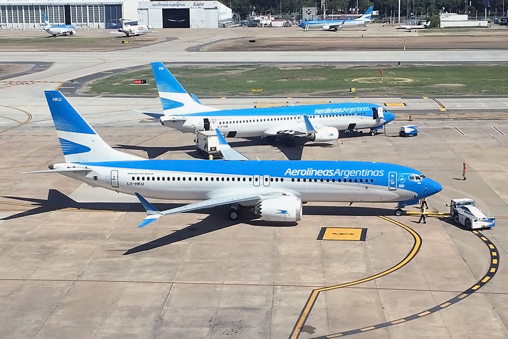 Desde marzo 2019, Aerolíneas Argentinas, ha dejado en tierra sus 5 Boeing 737 MAX 8. Tres de ellos en Aeroparque: LV-HKU, LV-GVD y LV-HKV. En Ezeiza han quedado el LV-GVE y LV-HKW, preservados según los lineamientos y requerimientos establecidos por Boeing.
