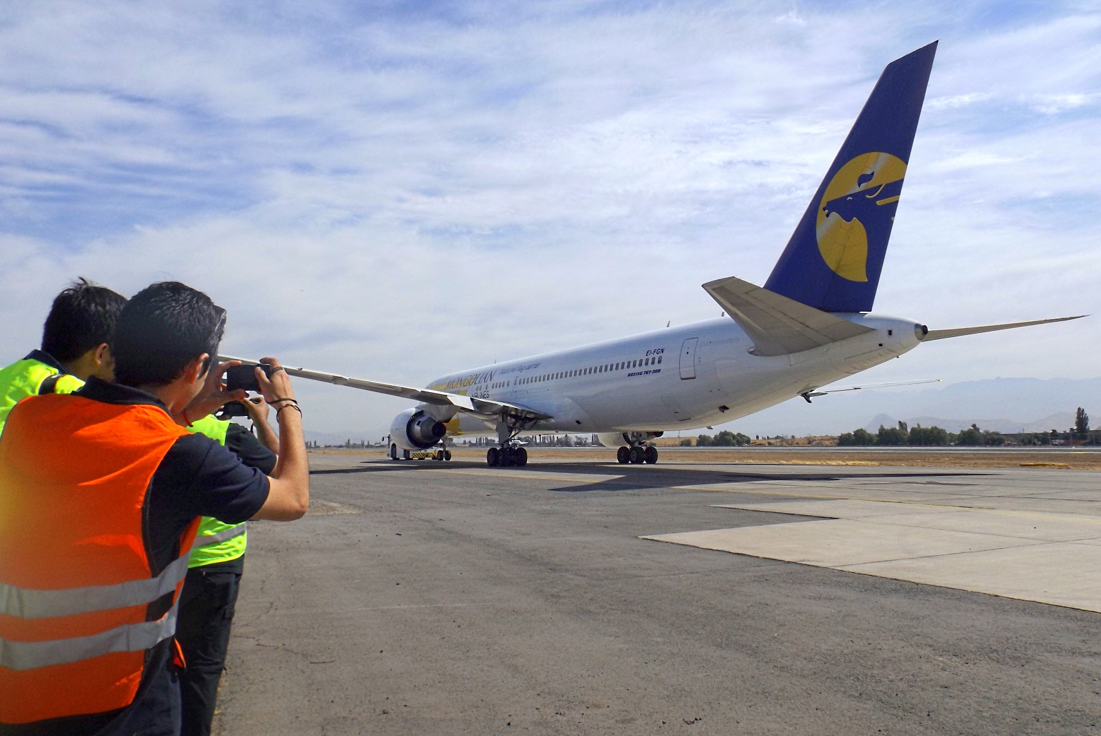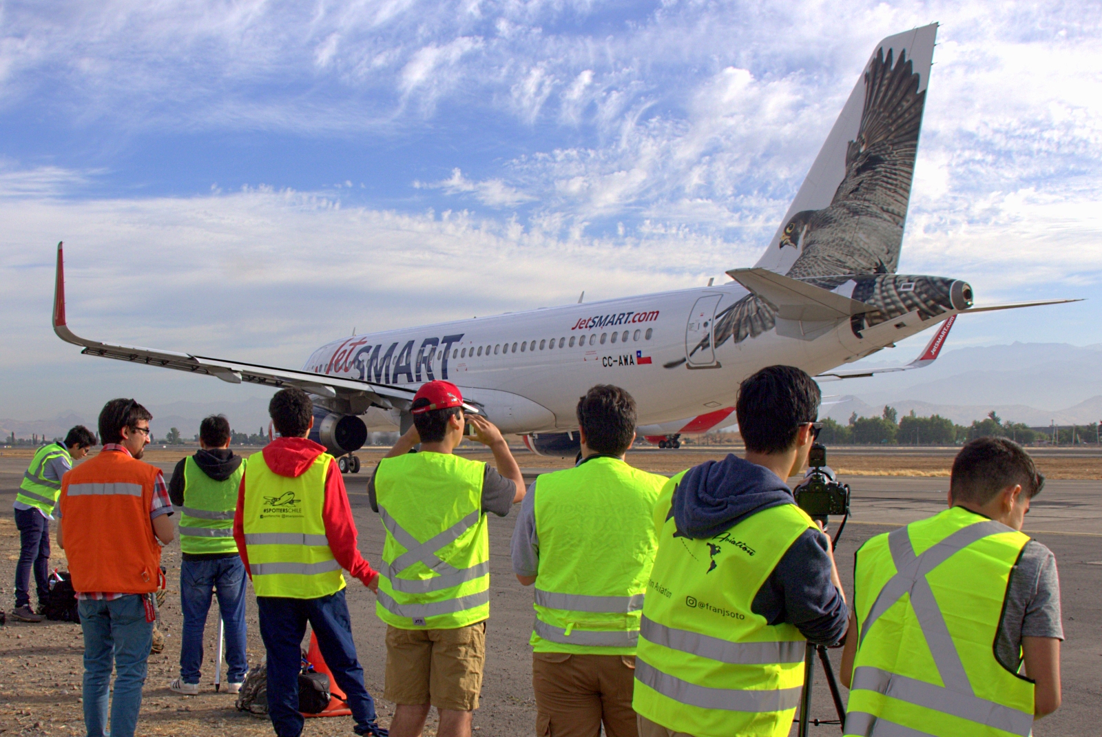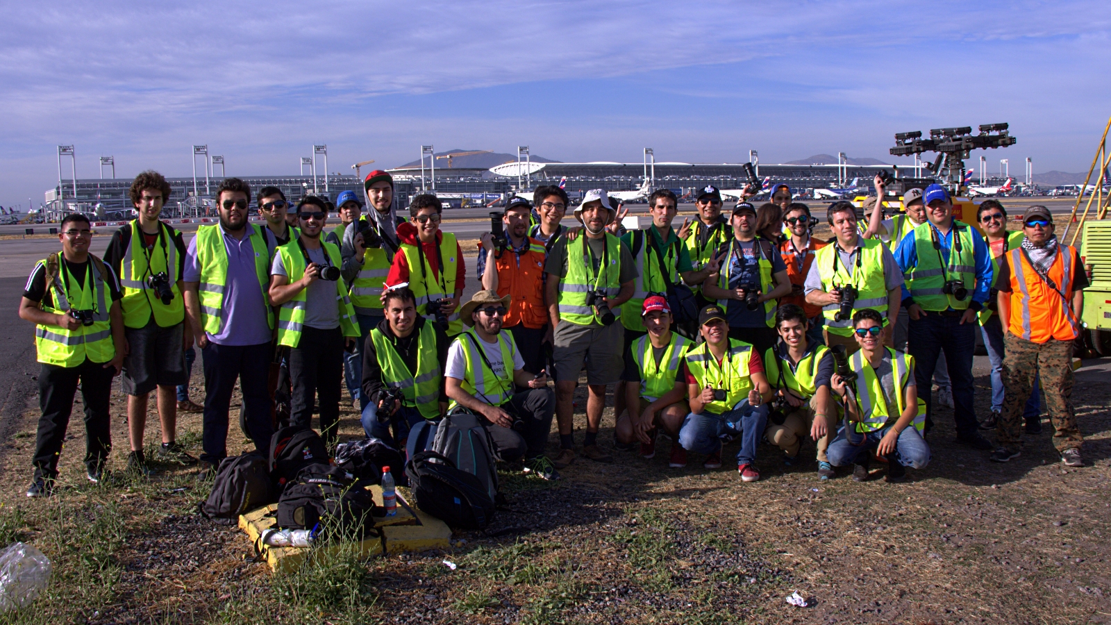 Desembarcados del ómnibus, recibimos instrucciones de seguridad y directivas de orientación general que nos entregó John Pérez en nombre de la DGAC y quedamos en “libertad de acción” para comenzar a tomar fotografías desde un cuadrilátero próximo al rodaje «Kilo» paralelo a la pista 17L/35R mirando hacia el Este y la Cordillera de los Andes.