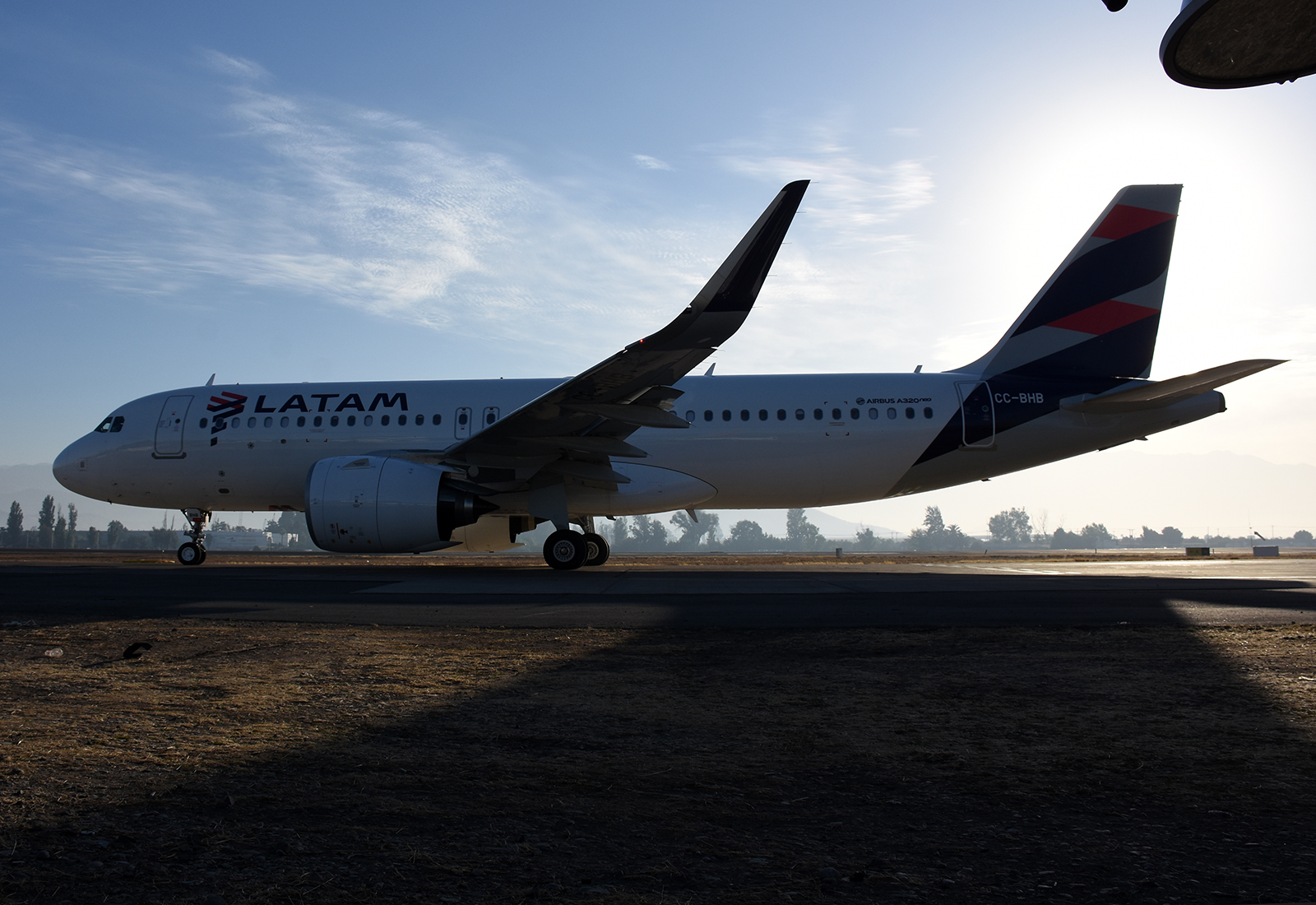 A pesar de estar a contraluz ya que el sol recién venía saliendo, la ubicación fue ideal para observar aeronaves que se encaminaban a despegar por las cabeceras activas: La 17L para vuelos pesados y la 17R para el resto del tráfico (aún se encuentra en mantenimiento y no se puede operar en toda su extensión).