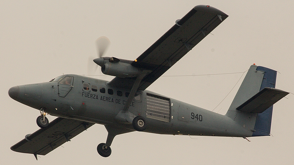 El de Havilland Canada DHC-6-300 matrícula 940 sobrevuela la base evaluando el techo de nubes para determinar si las condiciones meteorológicas son adecuadas para las muestras en vuelo (foto: Carlos Ay).
