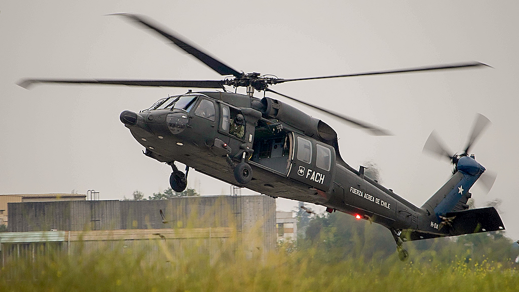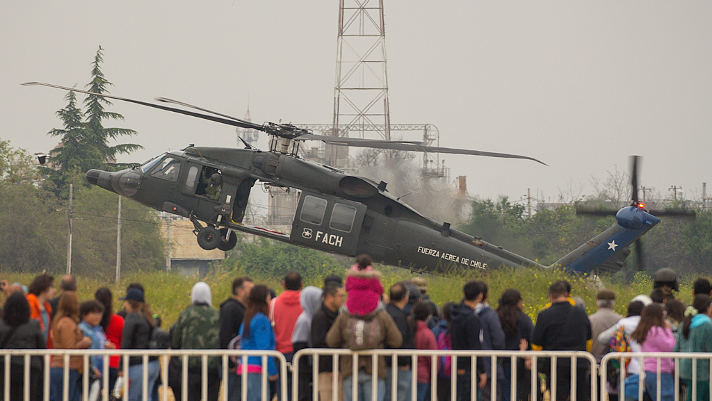 El S-70i Blackhawk H-04 se aproxima a tierra durante una demostración de despliegue táctico de fuerzas especiales (foto: Luis Quintana Aránguiz).