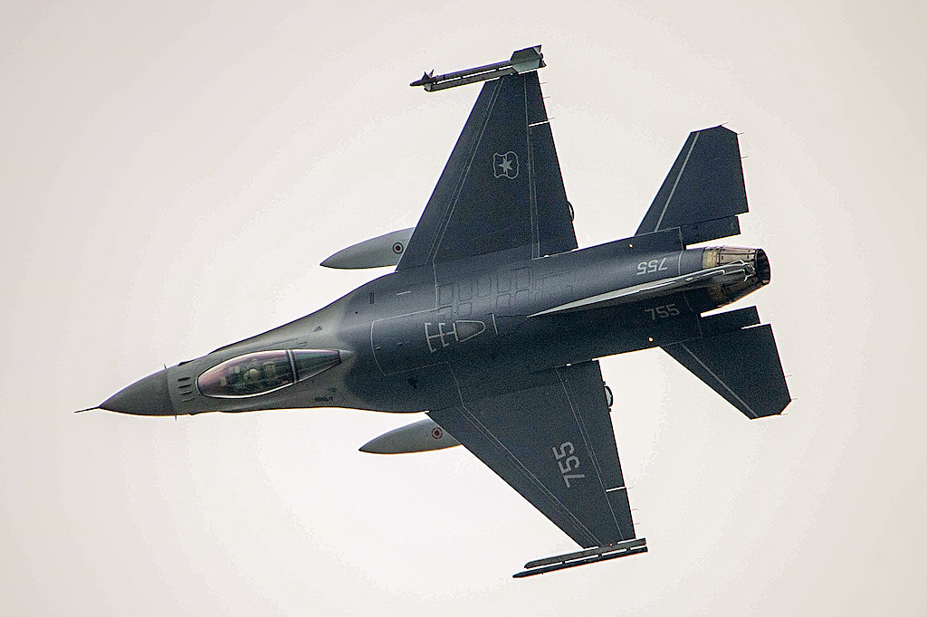 El F-16AM Fighting Hawk matrícula 755 en plena exhibición acrobática (foto: Luis Quintana Aránguiz).