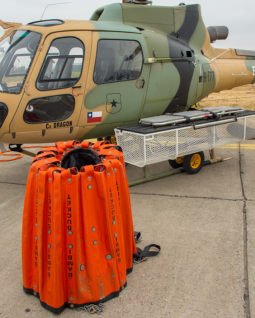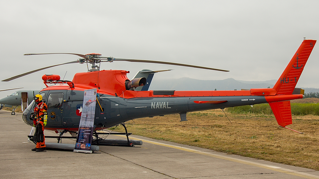 El último Airbus H125 recibido por la Armada de Chile se exponía en tierra en configuración de búsqueda y rescate marítimo (foto: Carlos Ay).