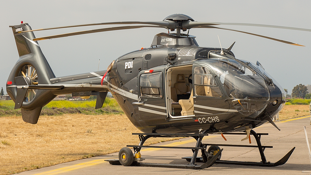 El Eurocopter EC135 CC-CHS, perteneciente a la Policía de Investigaciones, en exhibición estática (foto: Carlos Ay).