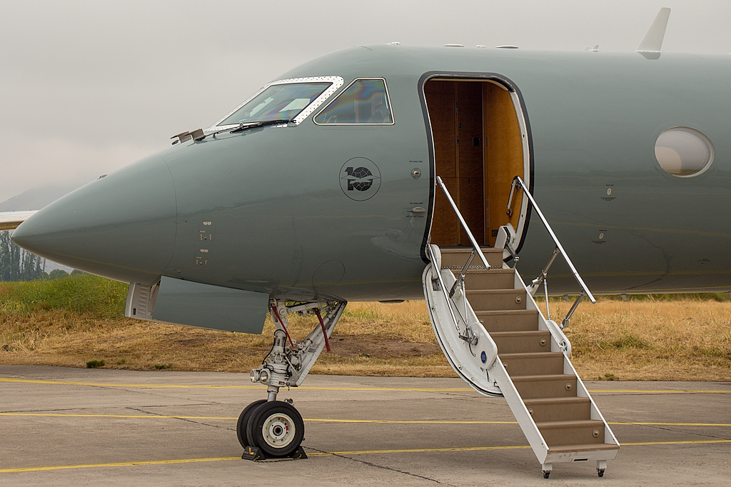 Acercamiento a la trompa y puerta de acceso al Gulfstream IVSP matrícula 913 (foto: Carlos Ay).