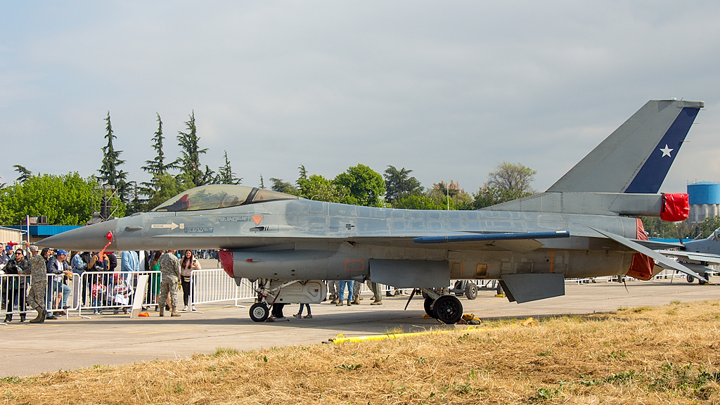 El F-16A Fighting Falcon que atraía a buena cantidad de público no era otra que un célula didáctica que se emplea en Antofagasta para la capacitación de técnicos de ese sistema de armas (foto: Carlos Ay).