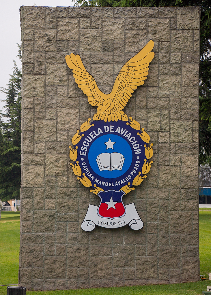 Muro que muestra el escudo de la Escuela de Aviación y su peculiar motto latino: «Dueño de sí mismo» (foto: Carlos Ay).
