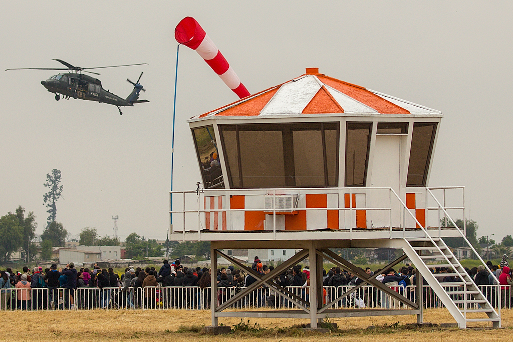El público se concentran frente a las vallas perimetrales para apreciar de cerca la demostración táctica del S-70i Blackhawk H-04 (foto: Carlos Ay).