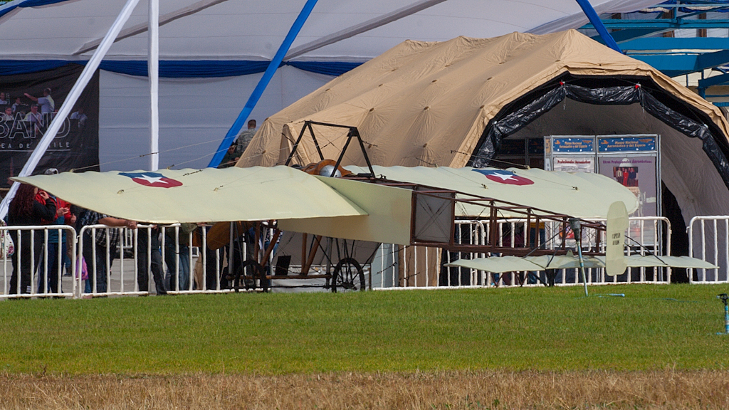 Una de las dos réplicas del Blériot XI que posee el Museo Nacional Aeronáutico y del Espacio se expuso estáticamente (foto: Carlos Ay).